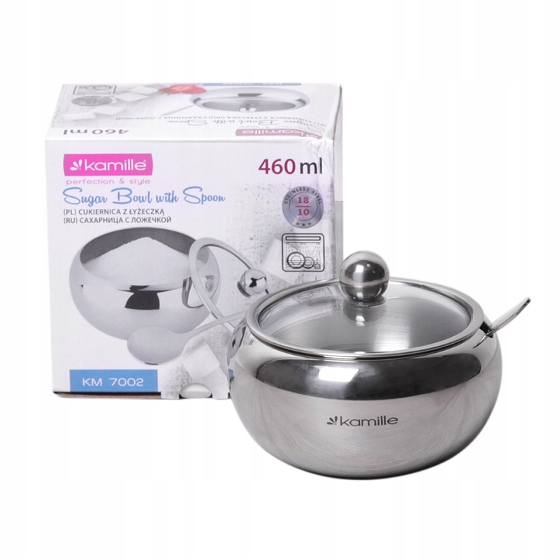 Сахарница из нержавеющей стали с ложкой 460 мл KAMILLE KM-7002