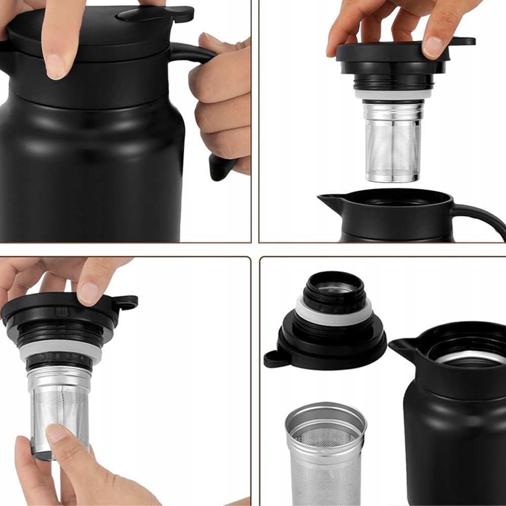 ☑️Современно и эффективно: Элегантный и модный термокофейник емкостью 1 литр. Его компактный размер совместим с большинством кофемашин, а широкое отверстие подходит для многих фильтров для кофе.