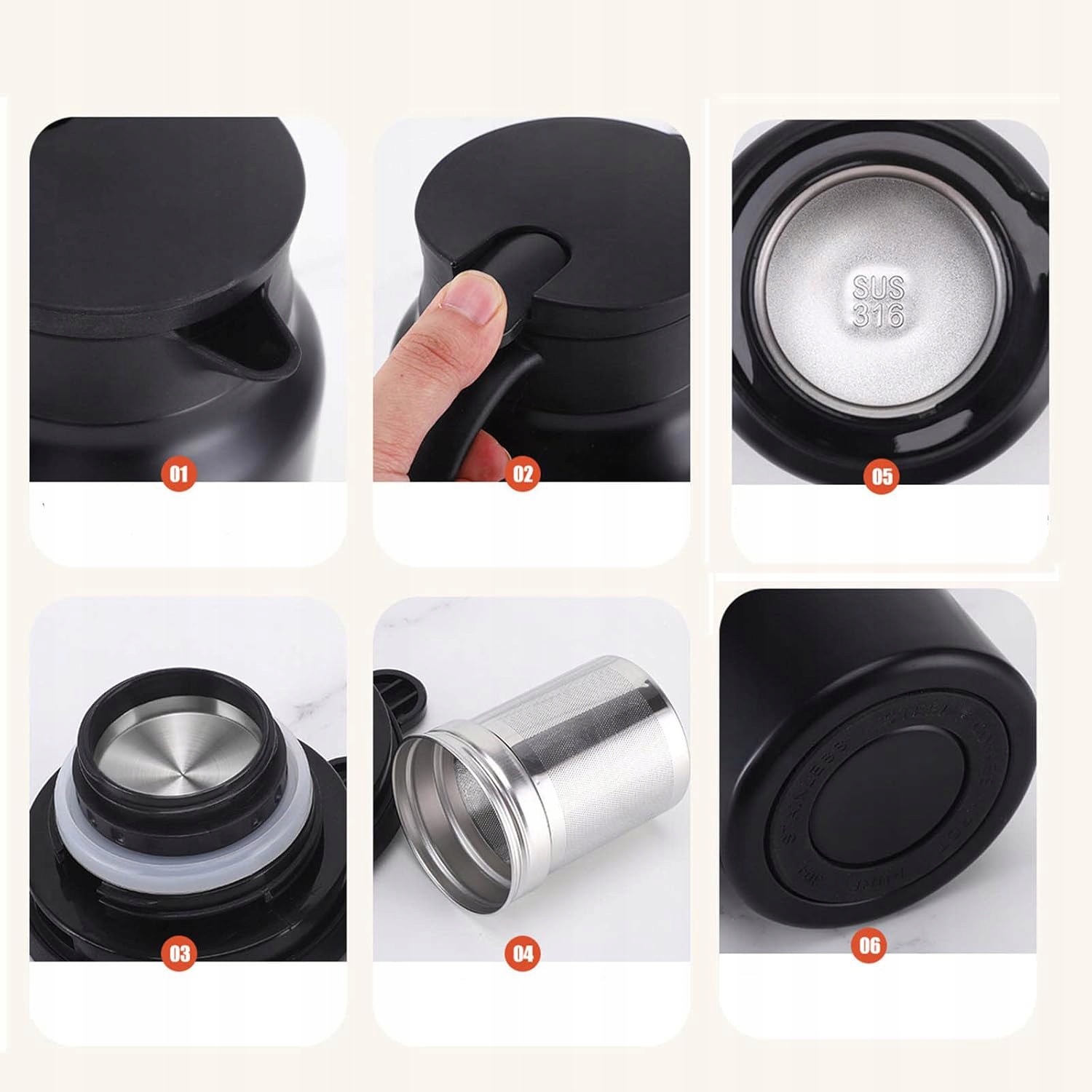 -Большое отверстие позволяет легко наполнять кофе, воду или чай и легко очищается губкой после каждого использования.