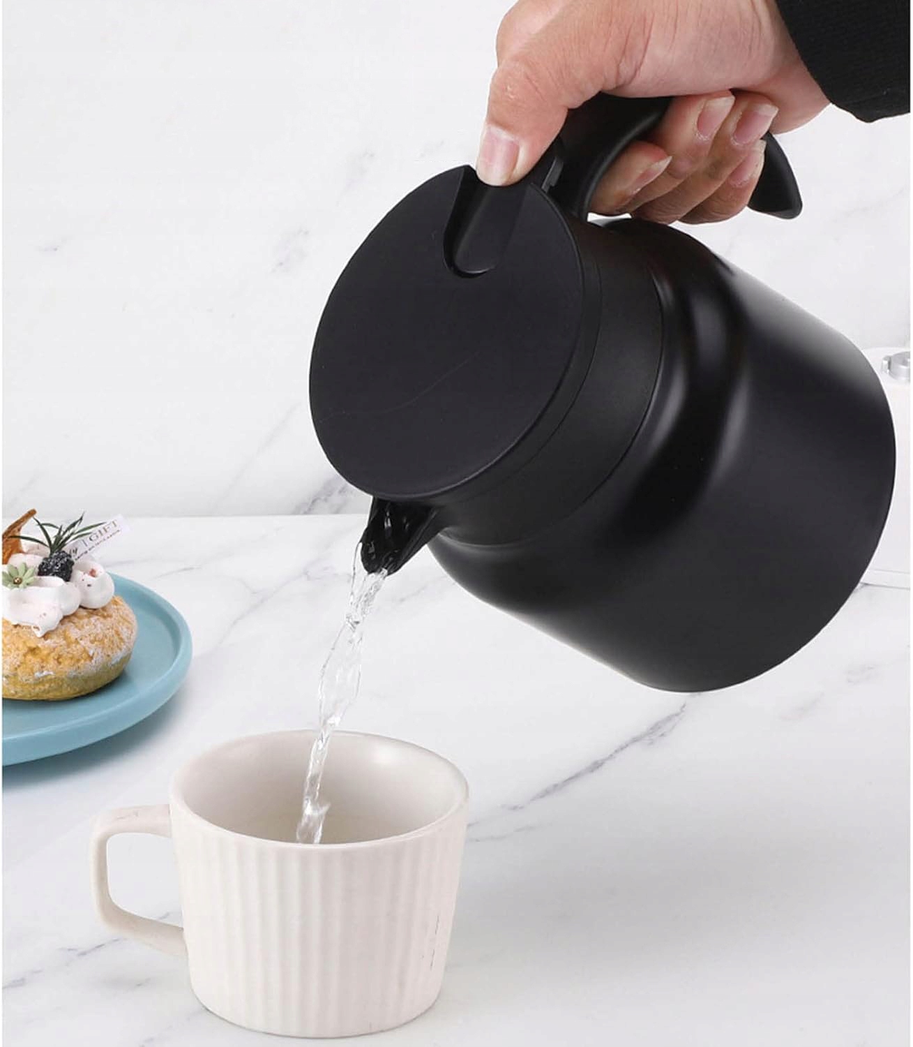 ☑️ПОРТАТИВНЫЙ И УДАЛЕН ОДНОЙ РУКОЙ. Наши легкие термосерверы оснащены рычажным носиком и удобной изогнутой ручкой, которые обеспечивают исключительную простоту использования и позволяют без проблем приготовить утренний кофе. Легко устанавливаемая крышка герметична и блокируется при закрытии дозатора кофе.