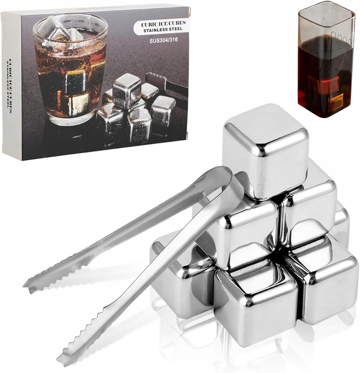 СТАЛЬНЫЕ КУБИКИ ЛЬДА 8 ШТ. МНОГОРАЗОВЫЕ С ЩИПЦАМИ И КОРОБКОЙ