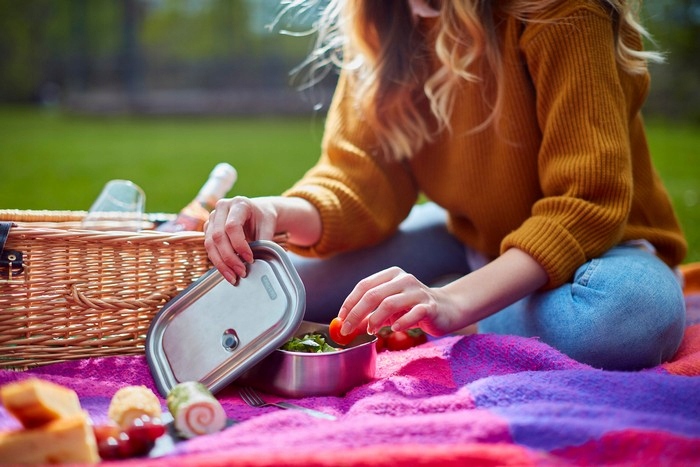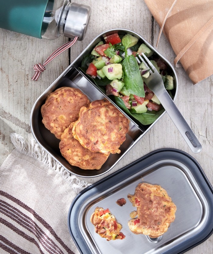 ХАРАКТЕРИСТИКИ ПРОДУКТА: - ланч-бокс изготовлен из нержавеющей стали и оснащен силиконовым удерживающим ремешком оливкового цвета, - внутри подвижная перегородка для разделения еды, - стальная вилка в комплекте, - крышка, оснащенная клапаном, позволяющим контейнер герметичен, - контейнер не подходит для микроволновой печи, - сам контейнер можно использовать в духовке (это может привести к изменению цвета стенок), - можно хранить в морозильной камере, - не содержит BPA, - контейнер, перегородка и вилку можно мыть в посудомоечной машине, чехол и ремень предназначены для ручной стирки.Размеры: 20 х 14 х 5,5 см (ланч-бокс - длина х ширина х высота), 15 см (длина вилки) Цвет: серебристый, оливковый Материал: нержавеющая сталь , силикон Коллекция: Box Appetit