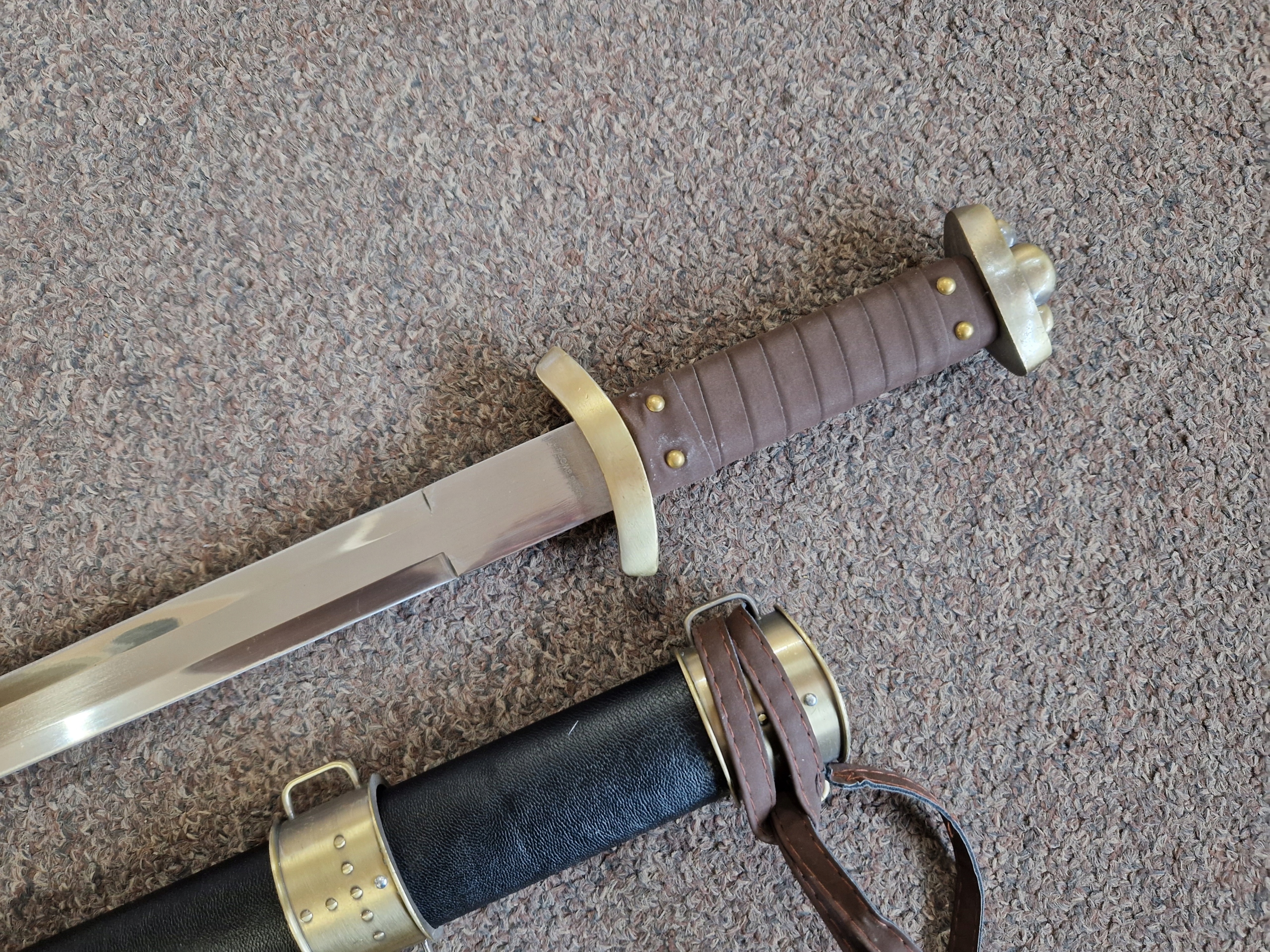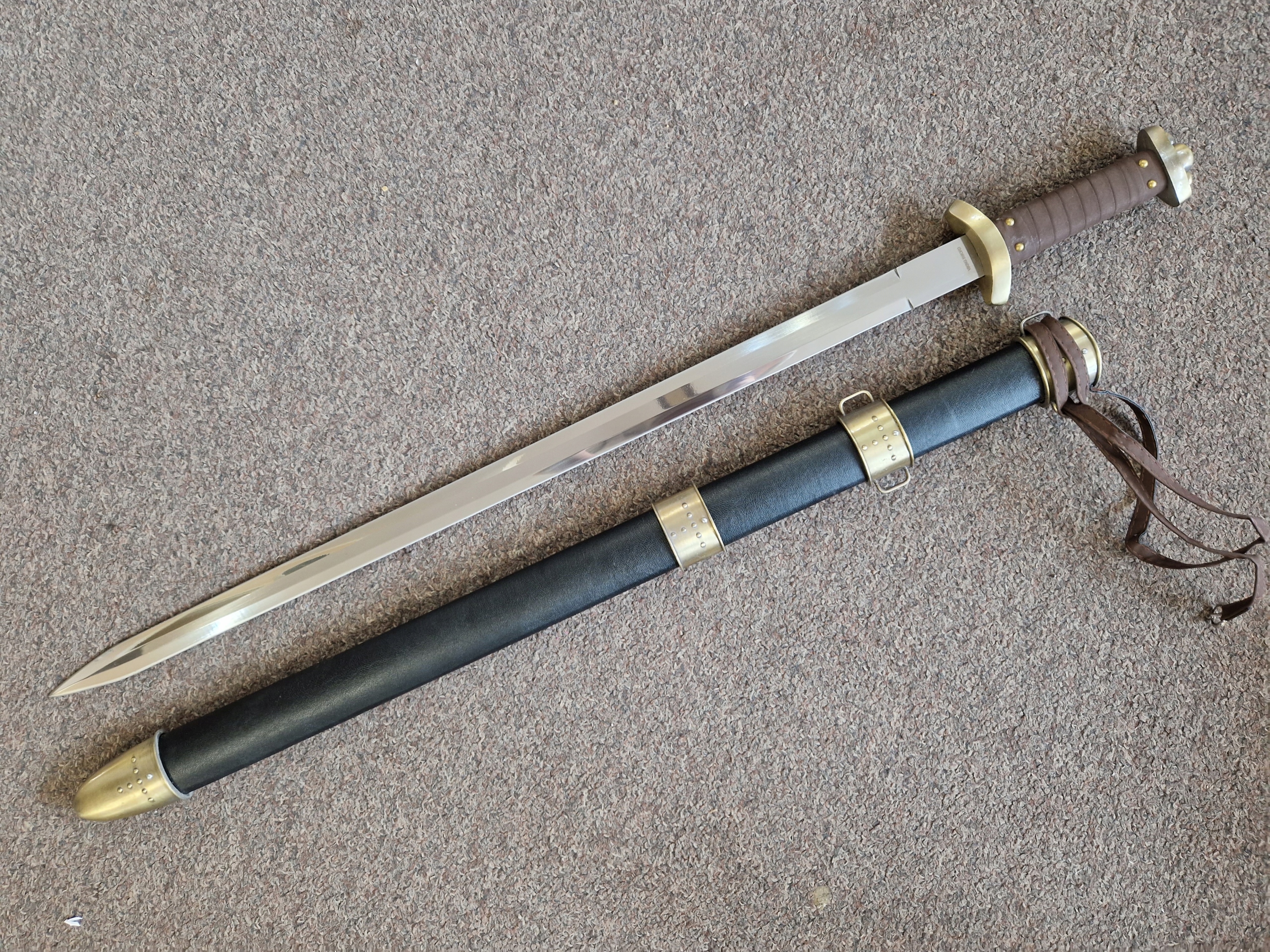 Стальной меч викингов 9SM7-290 с ножнами и поясом ПОВРЕЖДЕН