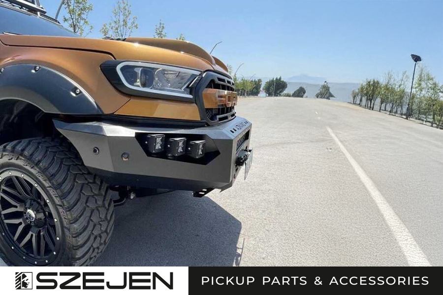 Бампер изготовлен из высокопрочной углеродистой стали, что гарантирует его исключительную долговечность и устойчивость к механическим повреждениям. Точные вырезы с ЧПУ и формовка на гибочных станках с числовым программным управлением обеспечивают идеальную посадку на Ford Ranger (2015-2022 гг.), внедорожный и эстетичный внешний вид.