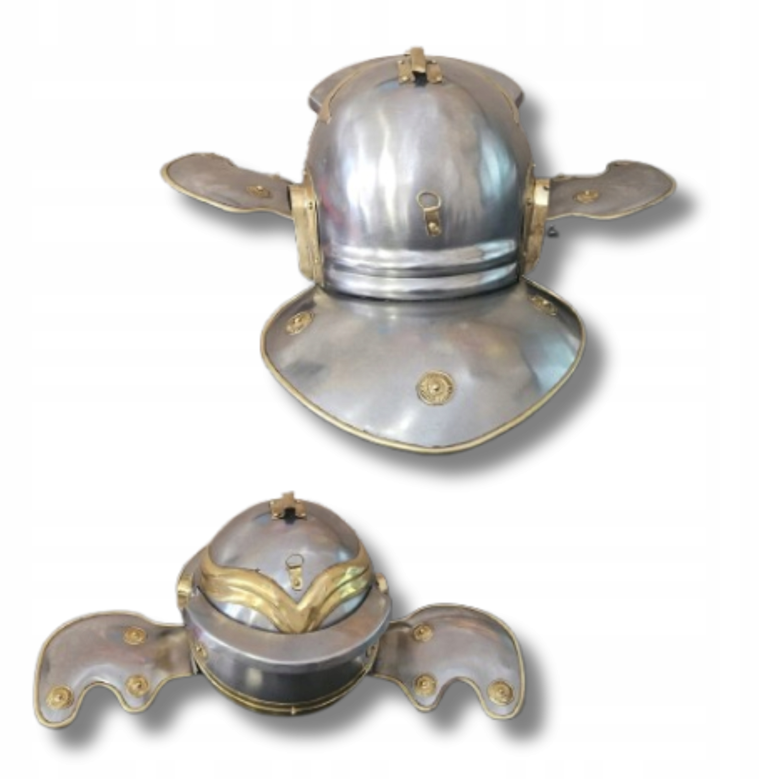 Это впечатляющая, полнофункциональная копия шлема римского легионера, сочетающая в себе подлинность изготовления, долговечность и привлекательный внешний вид. Идеально подходит для реконструкции, исторической коллекции или в качестве необычного украшения интерьера. ️