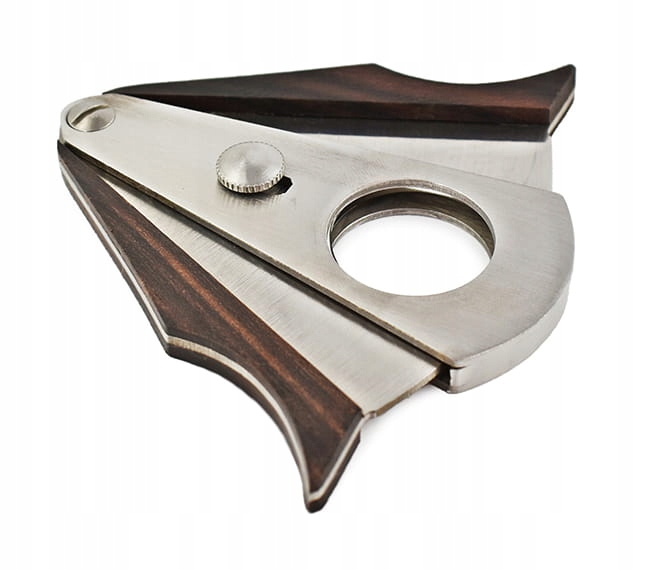Нож для сигар очень характерного дизайна с интересными деревянными вставками в боковых частях. Уникальный дизайн и точность изготовления делают его элегантным и желанным. Оснащен двумя лезвиями серповидной формы.