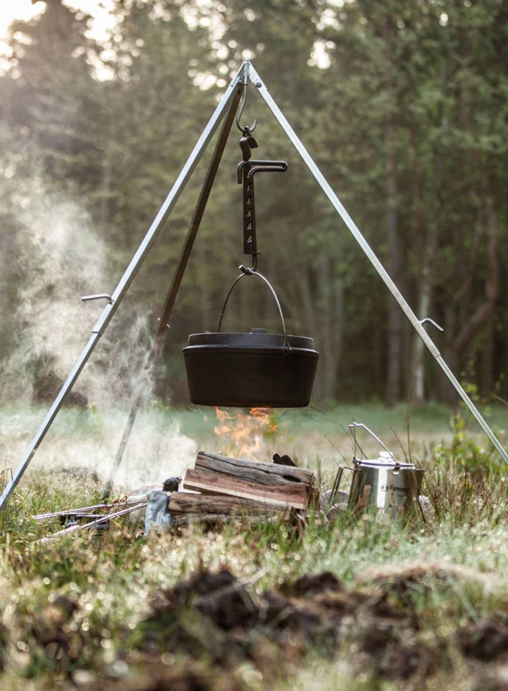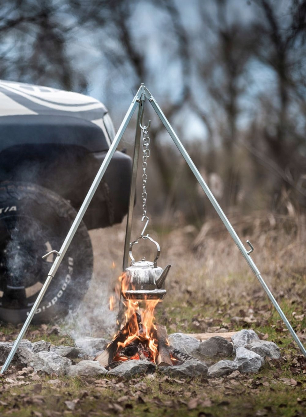 Штатив Petromax — это простой и эффективный способ улучшить приготовление пищи на открытом воздухе. Решетку для гриля или чугунную кастрюлю Petromax можно повесить на крючок прочного штатива. Цепочка позволяет в любой момент изменить расстояние кастрюли или чайника от огня. Наклонные ножки обеспечивают устойчивое положение на различных поверхностях. Каждую ножку можно индивидуально и плавно регулировать по высоте, что позволяет легко выравнивать неровные полы.