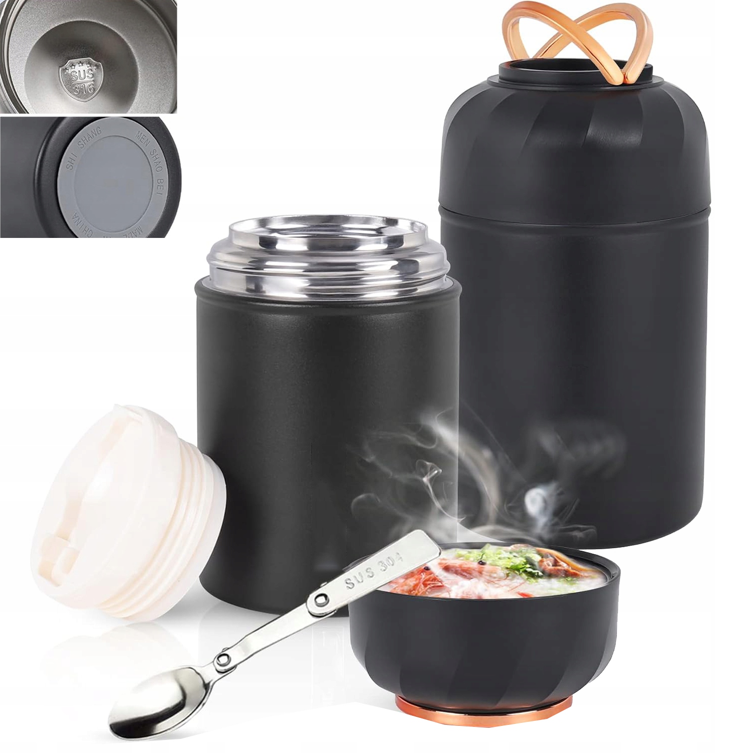 Пищевой термоконтейнер на 550 мл, термокружка из нержавеющей стали со складной ложкой, герметичный изолированный контейнер для супа (черный)
