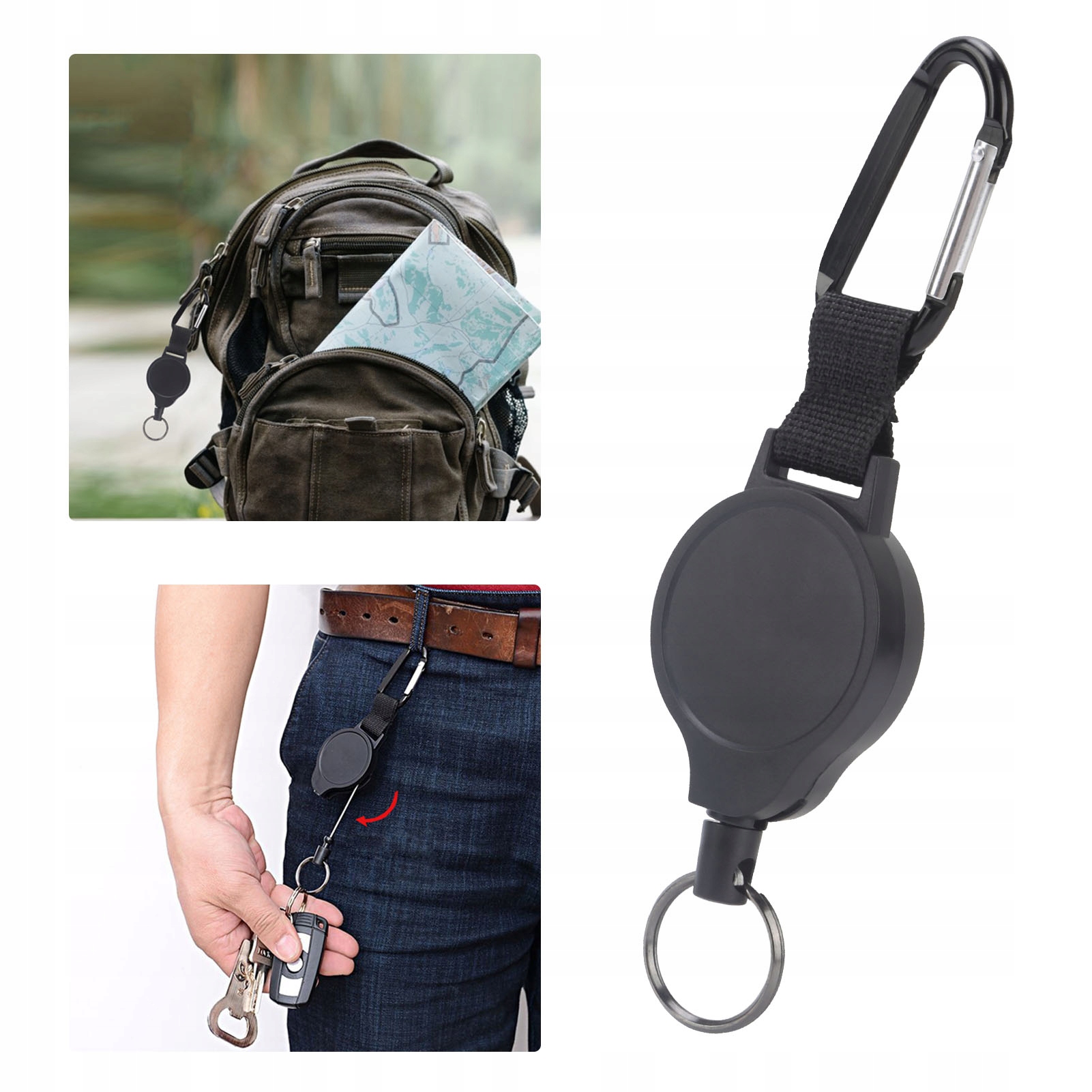 Применение: наденьте брелок на ремень, поместите ключ на кольцо и растяните его при использовании. Когда ключ не используется, отпустите его и автоматически прыгните обратно на пояс, чтобы избежать частой случайной потери ключа.