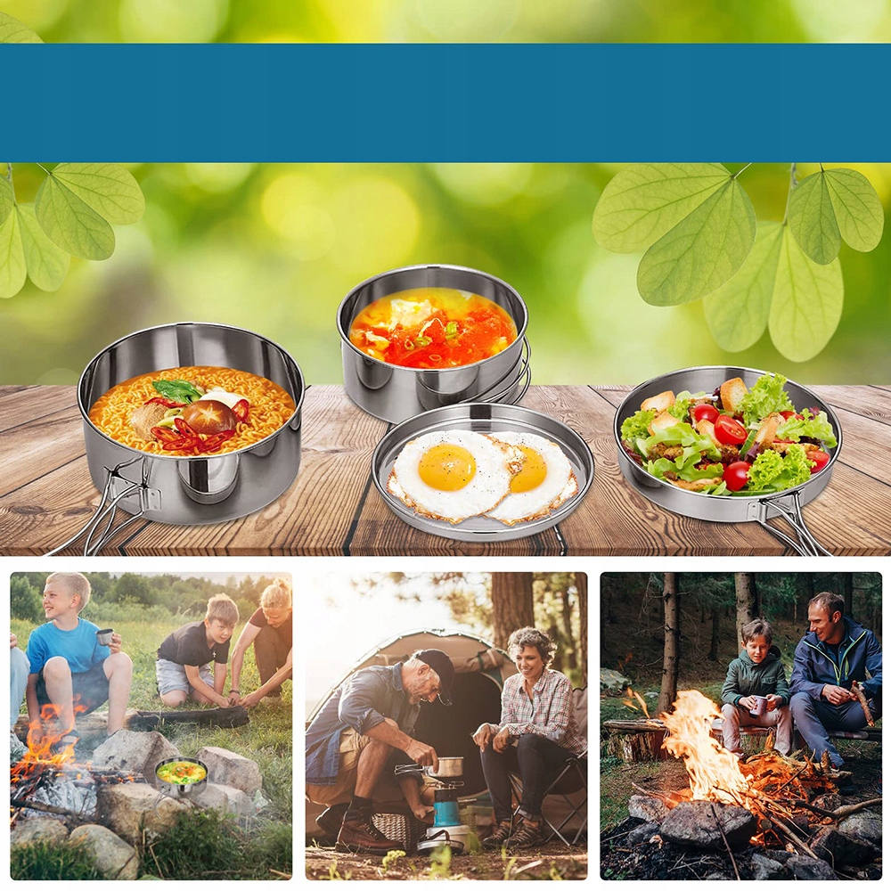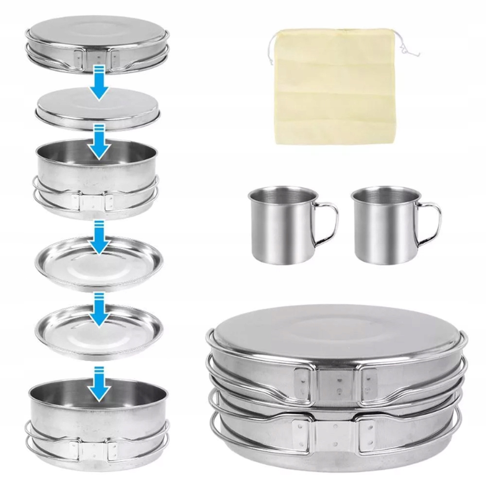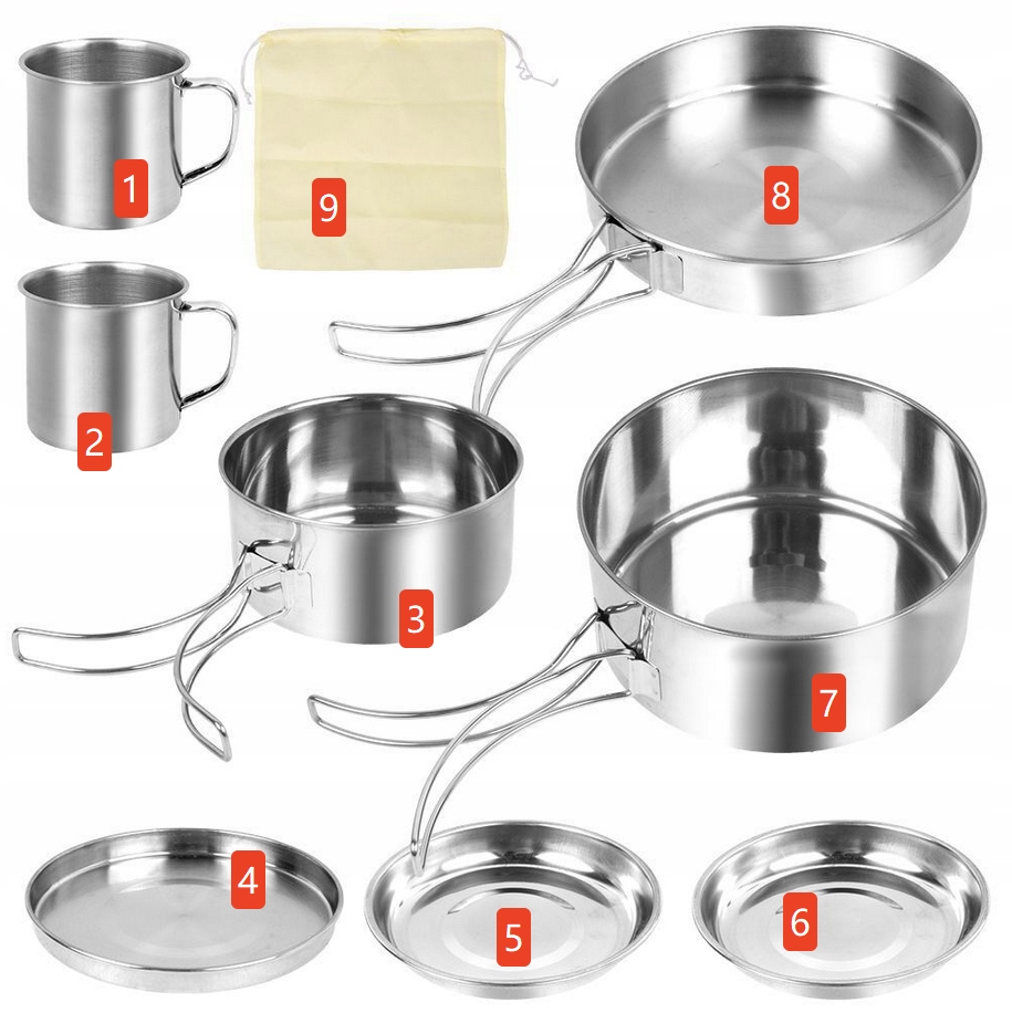 Стальной туристический военный сосудистый набор для кемпинга 8 El