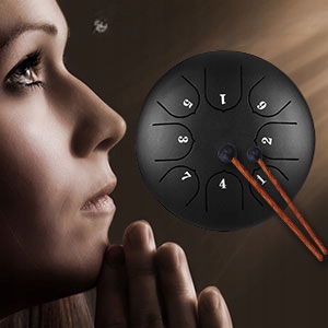 Защитная обработка: портативный стальной язычковый барабан диаметром 16 см с защитным покрытием, защищающим от потускнения, истирания и царапин. 3 резиновые ножки акустически изолируют барабан, обеспечивая неискаженный звук.