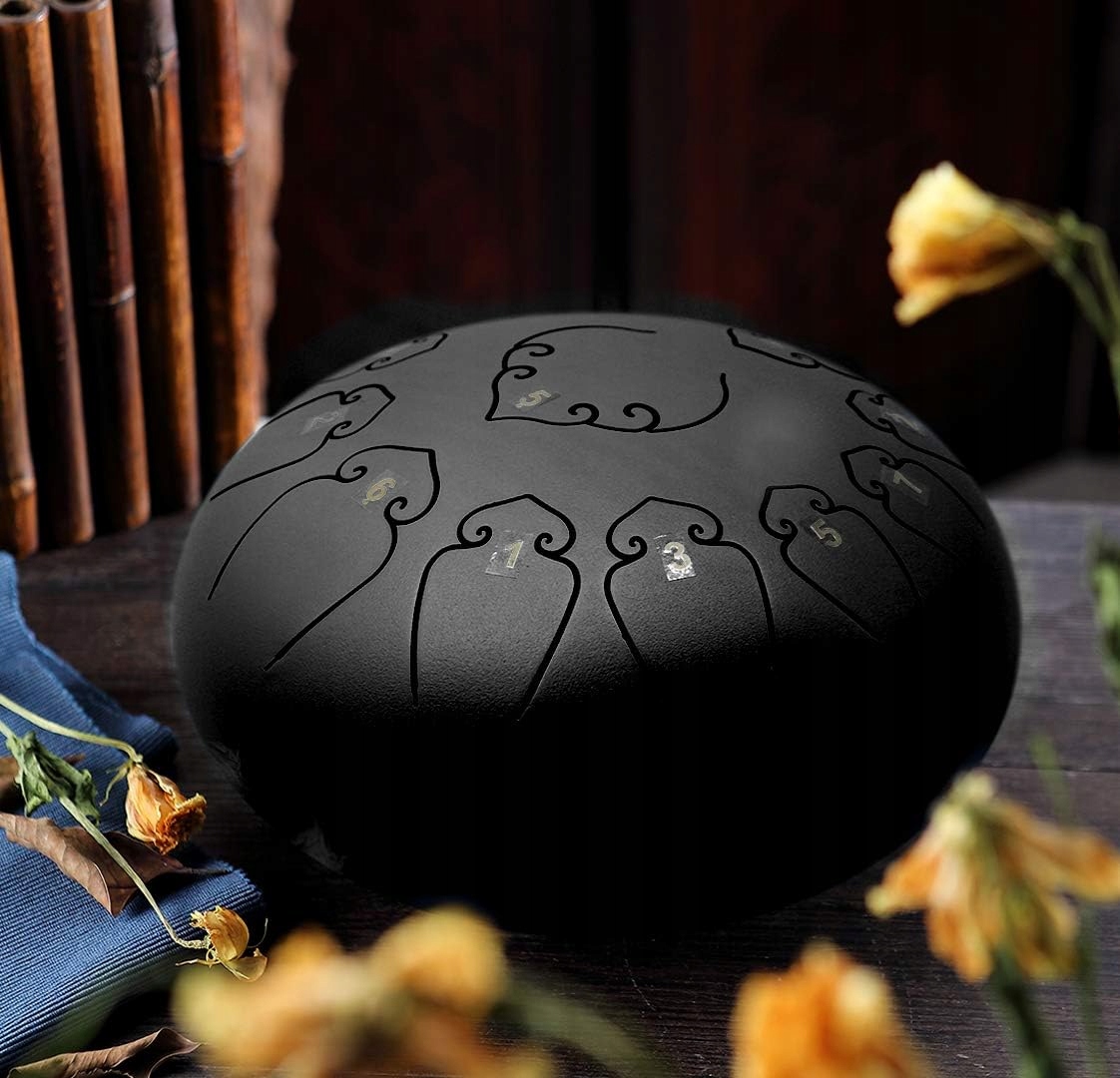 Чистый звук:Каждый стальной барабан изготовлен вручную мастерами и может воспроизводить чистый, неземной, буддийский звук. Благодаря новой углеродистой стали с более высокой твердостью шумы сопротивления, вызванные чрезмерным резонансом титановой стали.