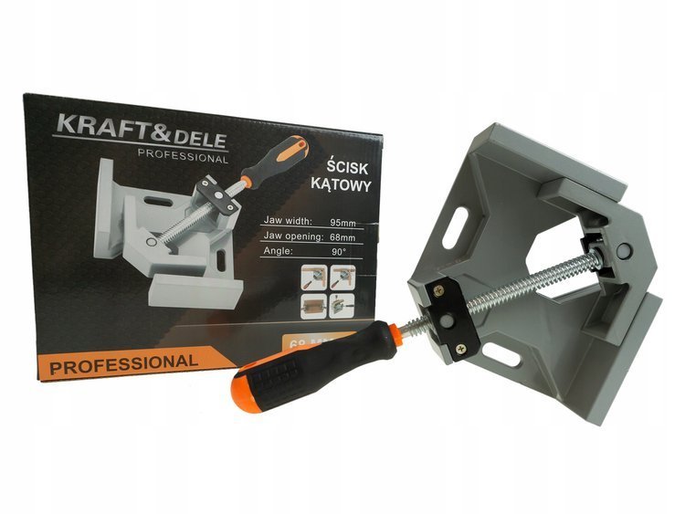 Столярный зажим Kraft&Dele позволяет точно прижимать соединяемые элементы под углом 90 градусов.