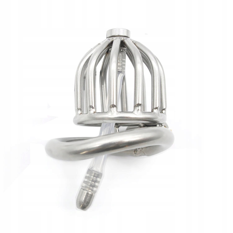 STALOWY PAS CNOTY KLATKA NA PENISA Z SILIKONOWYM DILATOREM CHASTITY CAGE