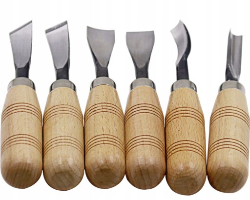 Набор из 6 долот для резьбы по дереву с разными наконечниками.