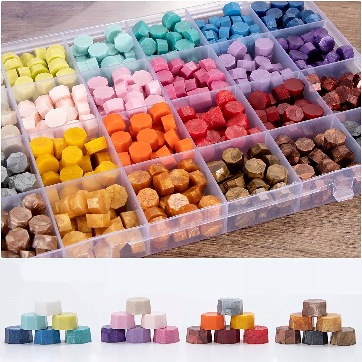 Наши жемчужины из сургуча представлены в 24 привлекательных цветах, по 25 штук в каждом. Вы можете дать волю своему воображению, создавая нужные цвета, чтобы создать блестящий и эксклюзивный сургуч, который удовлетворит ваши потребности в различных украшениях.