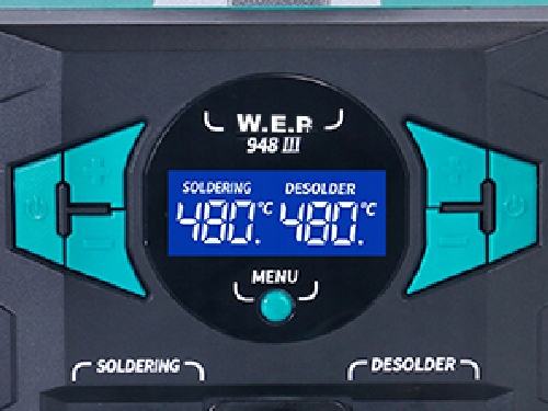 Паяльная станция WEP 948-III оснащена микропроцессором PID, который управляет работой устройства. Благодаря такому контролю температура получается очень точной и стабильной, а дополнительные функции делают работу эргономичной и очень эффективной.