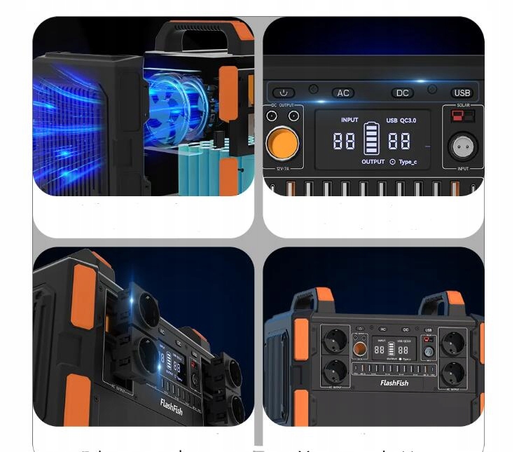 Наша электростанция имеет огромную мощность 1048WH и 1000 Вт AC. Он может в течение длительного времени поставлять большинство бытовых приборов с высокой мощностью без стресса, таких как электромобили, холодильники, фен, радиаторы, электрические грили и т. Д.