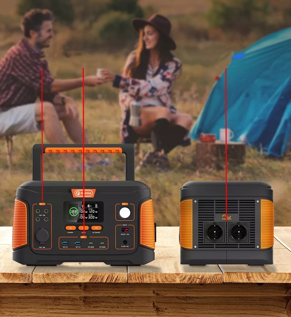 Flashfish J1000 имеет 2 розетки переменного тока (230 В, 1000 Вт), 2 розетки постоянного тока 14 В и 1 автомобильную 14 В, 2 розетки QC3.0 по 18 Вт, 2 USB-C по 60 Вт, 1 беспроводное зарядное устройство на 15 Вт. Эффективно доставляйте светильники, холодильники, устройства CPAP/Bi-PAP, компьютеры, радиоприемники и телефоны, телевизоры, вентиляторы, мелкую бытовую технику и многое другое.
