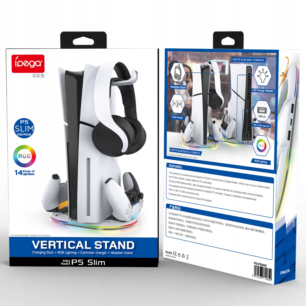 Вертикальная подставка с подсветкой RGB Ipega для Sony PlayStation 5 SLIM/ PS5 Pro с двойными чувственными патчами для прокладки H1> PG-P5S045 H2>