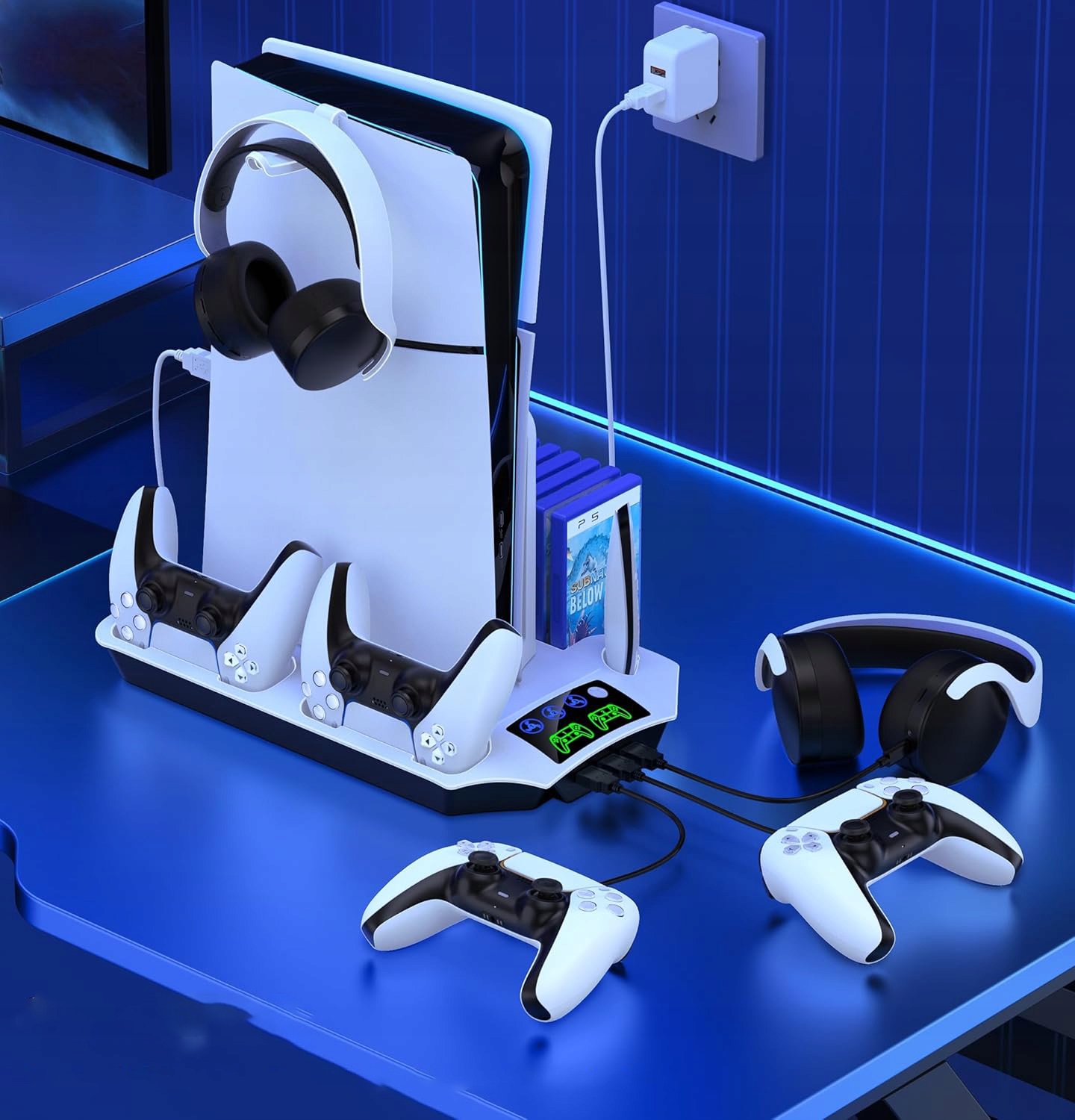 1 Подставка для PS5 и зарядная станция с функцией охлаждения для двух контроллеров