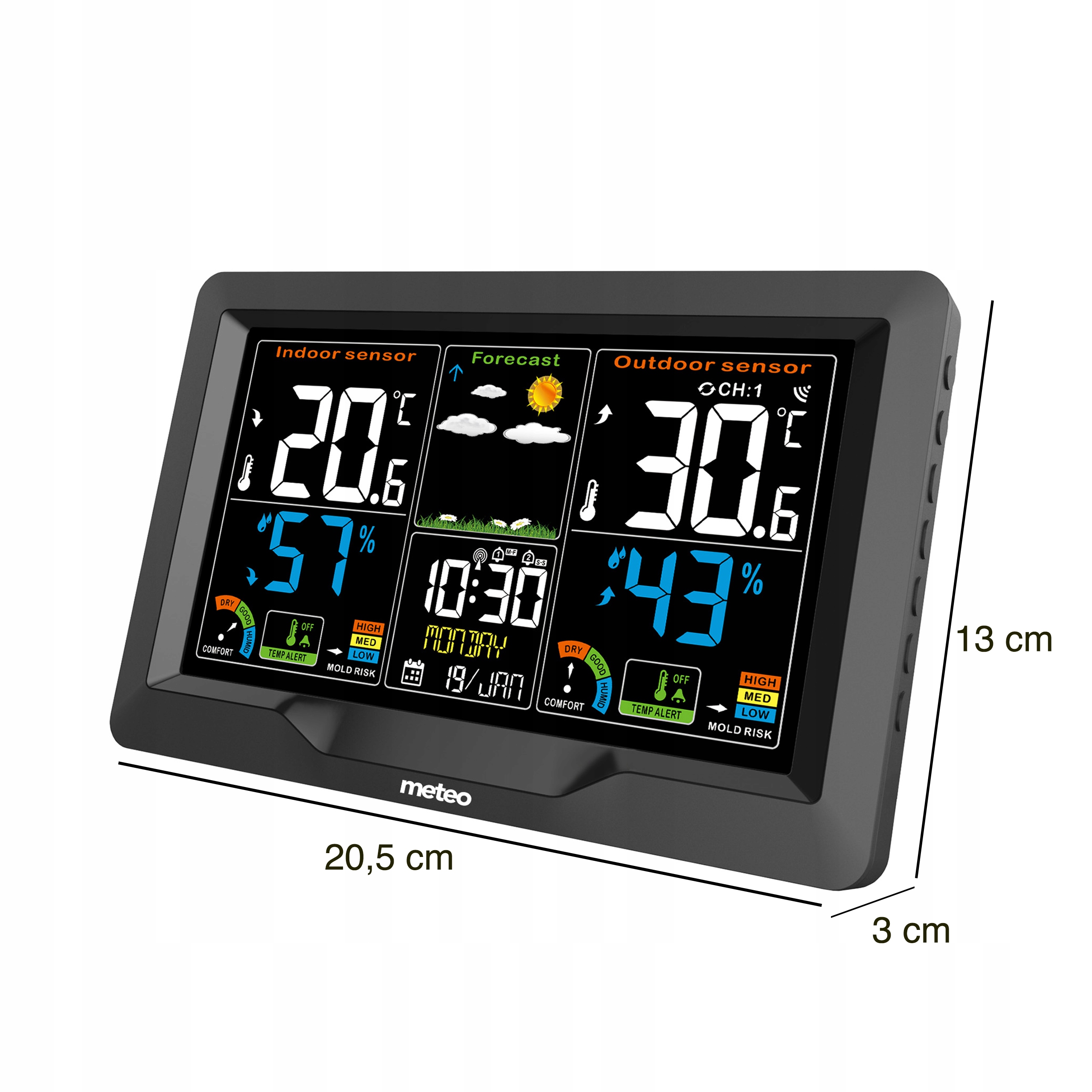 Измерение температуры внешнего датчика + влажность воздуха. Это до 60 млн. - это будет работать без каких -либо проблем в большом доме. Датчик также имеет дисплей, на котором мы можем увидеть температуру и влажность воздуха