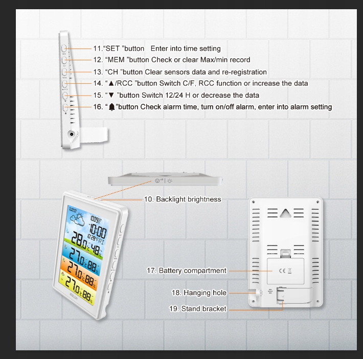 Прибор имеет элегантный внешний вид, благодаря чему подойдет как для гостиной, так и для кухни и офиса. Он выпускается в двух цветах: черном и белом, что позволит вам скорректировать выбор под свои предпочтения. Благодаря большому, четкому цветному дисплею и 4 различным значкам погоды читать прогноз погоды очень легко.