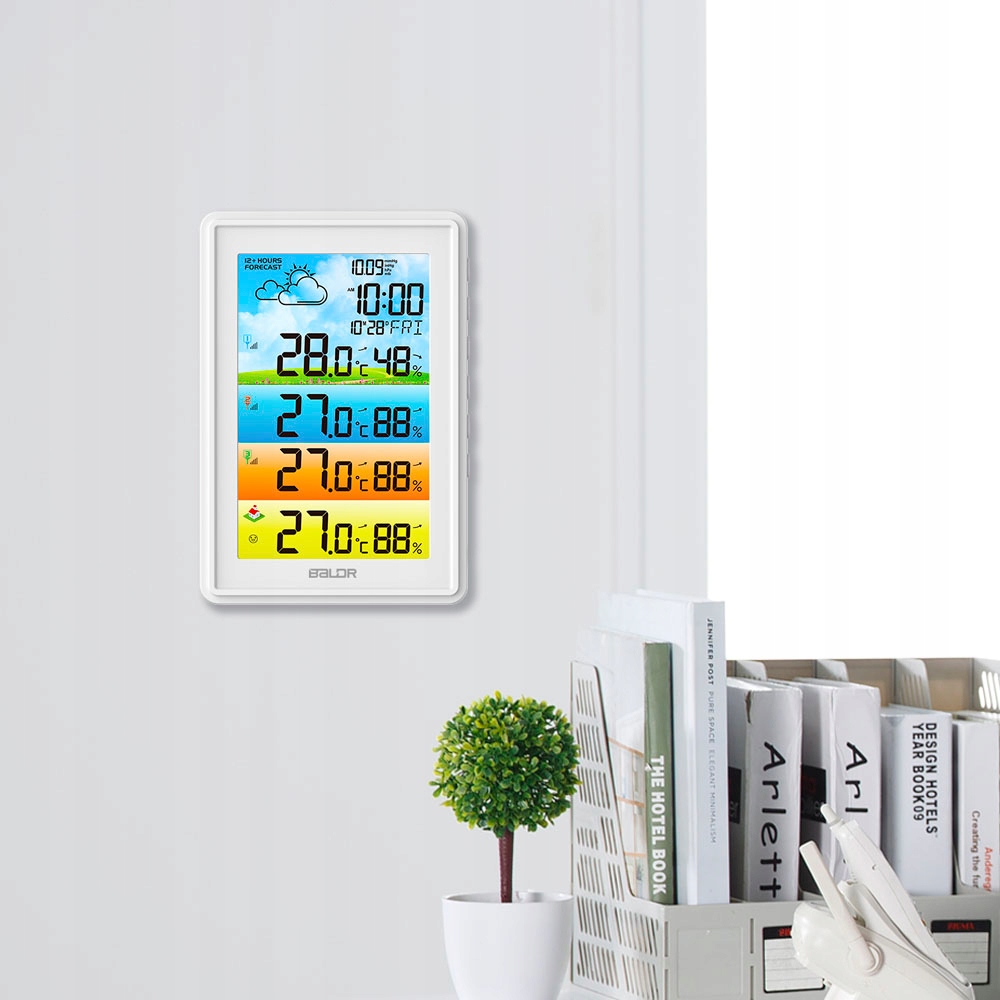 Беспроводная метеостанция Baldr B3604 с барометром и тремя датчиками: измеряет температуру в помещении и на улице, а также прогнозирует местный прогноз погоды, что делает его идеальным выбором для получения точных измерений, доступных с одного взгляда на большой, легко читаемый дисплей.