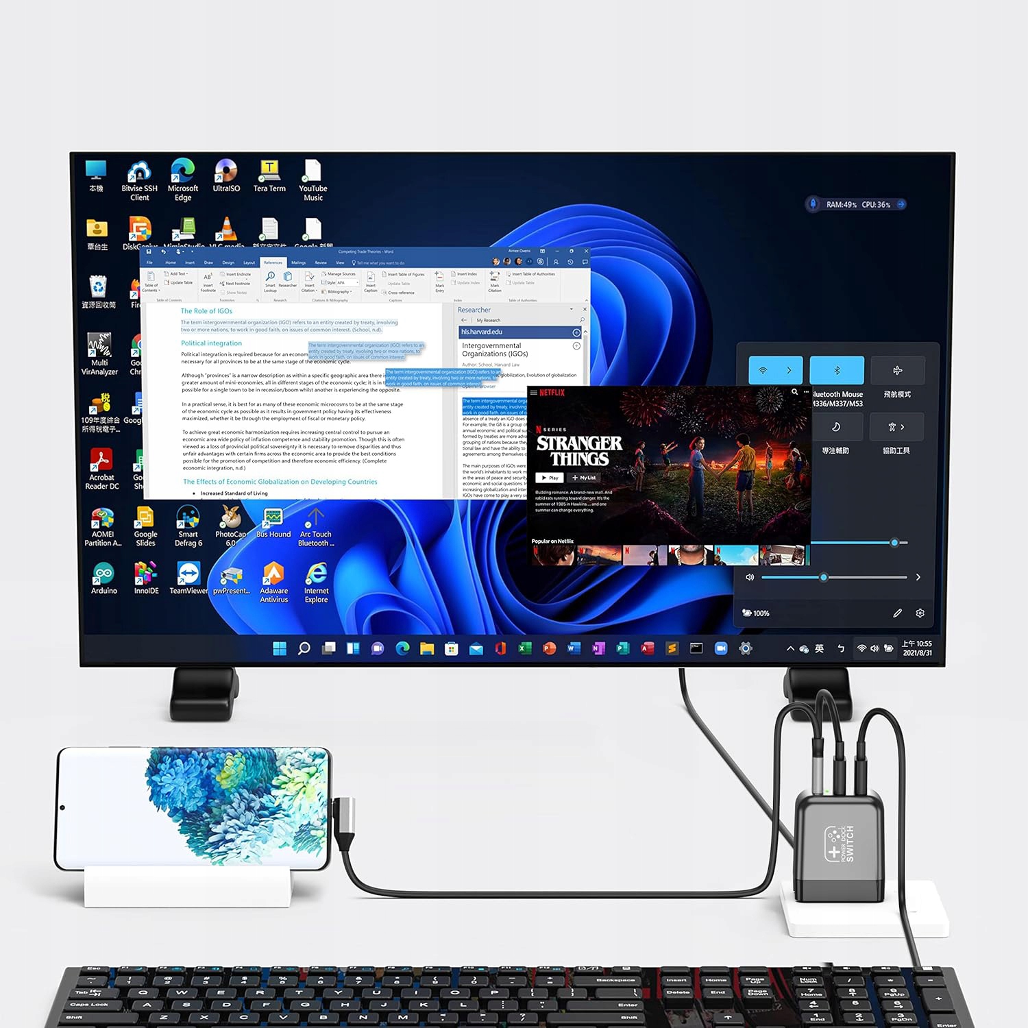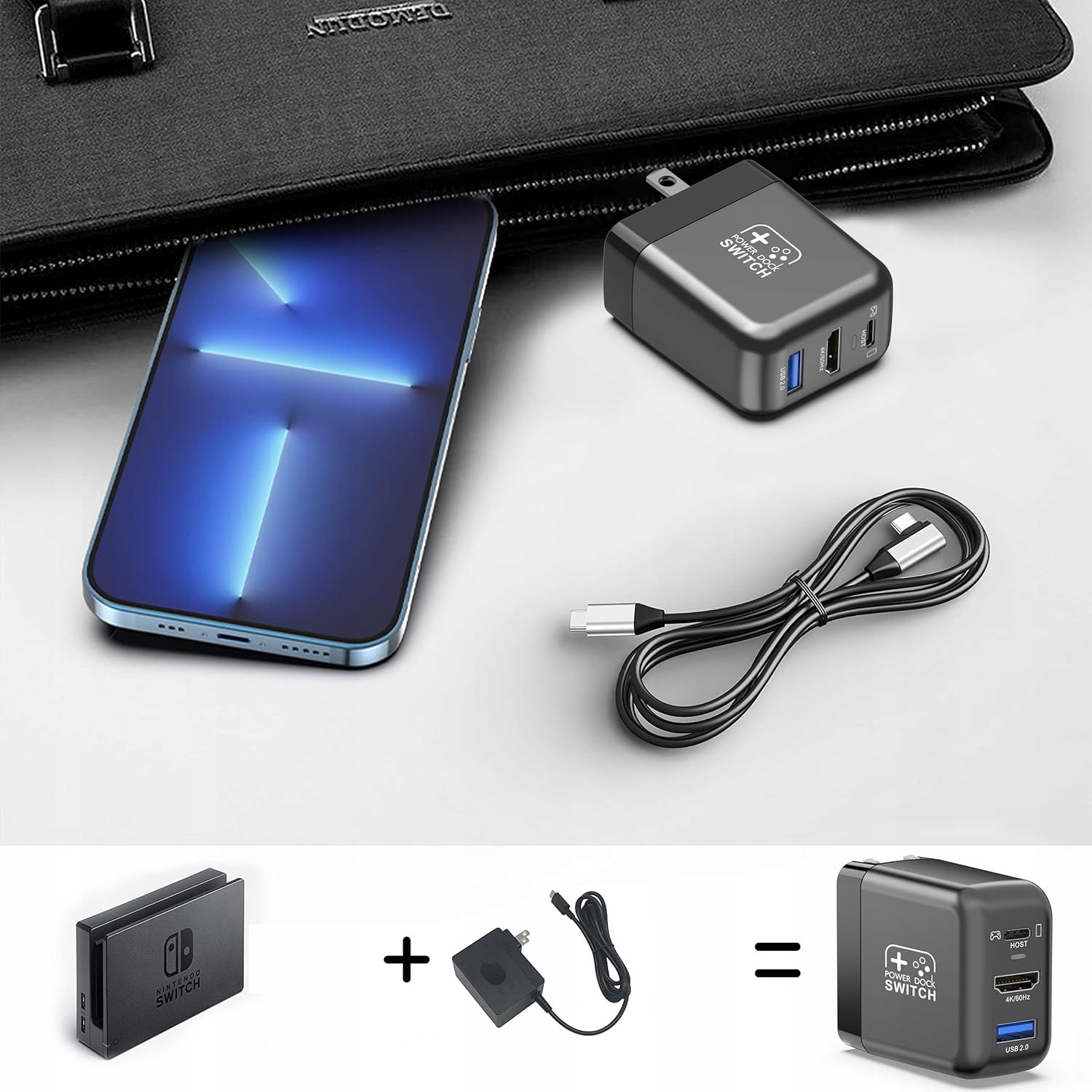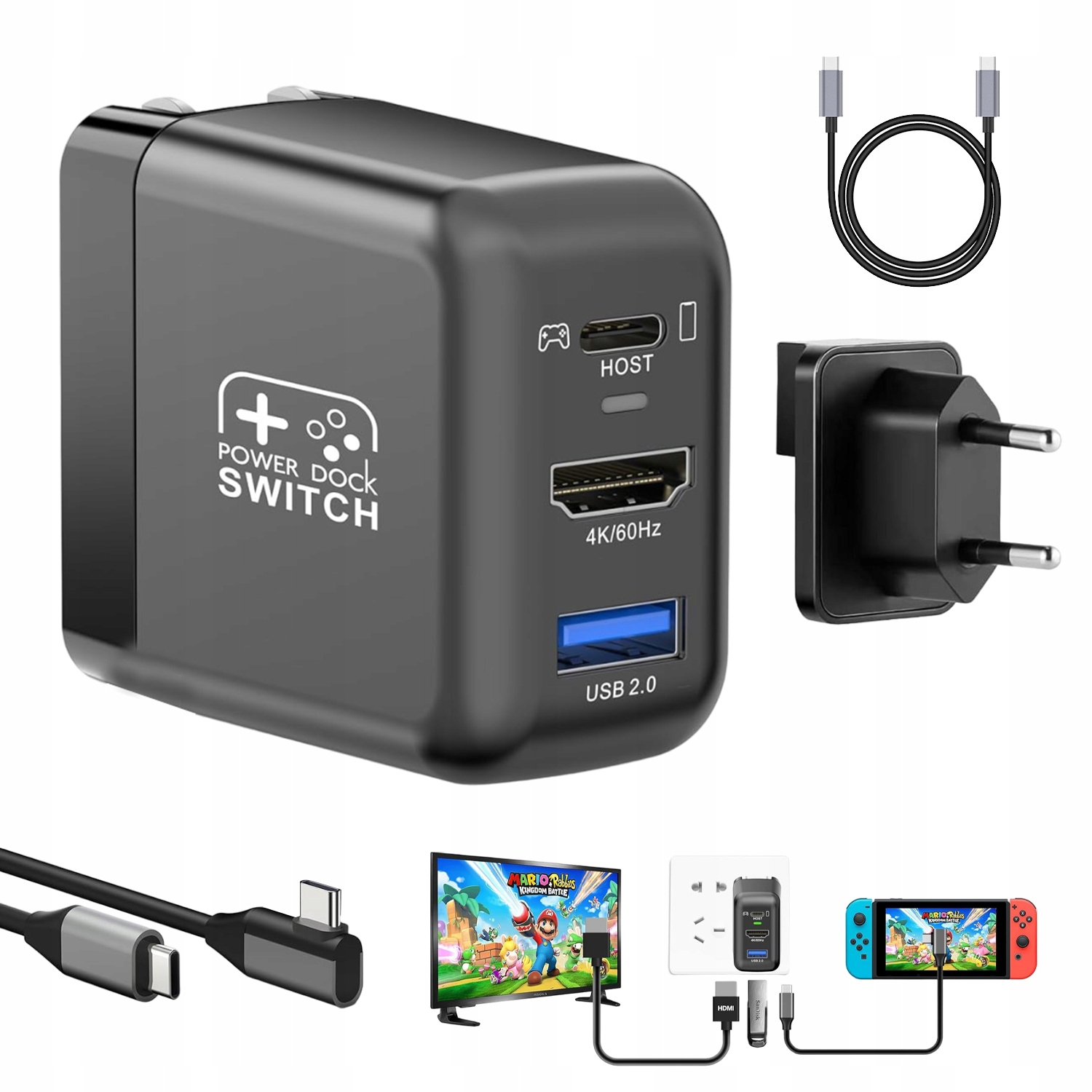 USB-C USB-C Кабель для USB-C 1 м длиной доступен в качестве премиального варианта. Док-станция Switch TV имеет встроенный порт HDMI, порт USB 2.0 и порт Type-C, что позволяет подключить максимум три устройства. Это зарядное устройство Switch Dock является идеальной заменой для оригинальной док -станции Dock Dock и источника питания, экономия денег и место