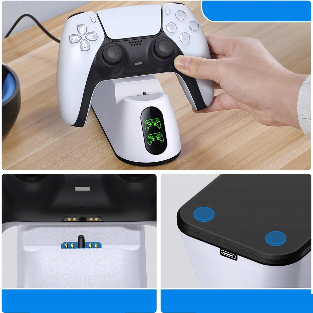 Здесь вы найдете новую версию зарядной станции PlayStation 5. Вы можете просто щелкнуть контроллер PS 5 на зарядной станции, а затем зарядить его. Подключитесь и играйте, легко и легко. Это идеальный аксессуар PS5 для PlayStation 5.