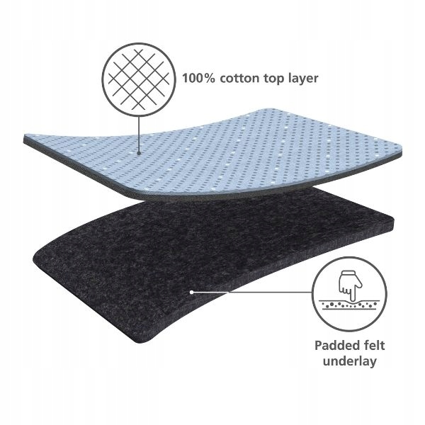 - чехол: верхняя часть – 100% хлопок перекрестного переплетения, устойчивый к разрыву; нижняя часть - подкладка из фетра толщиной 5 мм