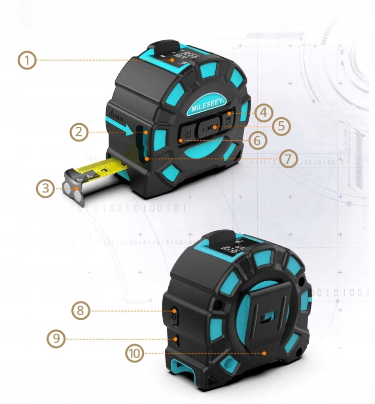 Лазерный дальномер с линейкой MILESEEY DT10B3 — надежный измерительный инструмент для определения расстояний. Он отличается исключительной точностью, быстротой реакции и большой дальностью стрельбы (40 м), а также многофункциональностью за счет дополнительной выдвижной штанги длиной 5 м.