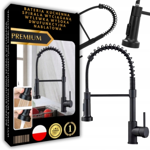 Кухонный смеситель ВЫСОКАЯ ПРУЖИНА, МАТОВЫЙ ЧЕРНЫЙ С ВЫДВИЖНЫМ ГИБКИМ ИЗЛИКОМ