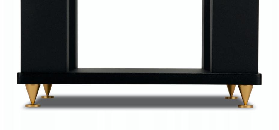 Стойки оснащены большими алюминиевыми коническими шипами цвета латуни, намеренно увеличенными в размерах, чтобы стать украшением данной конструкции. Шипы имеют встроенный крепежный винт. В качестве альтернативы пользователь может выбрать силиконовые ножки, если этого требует поверхность комнаты.