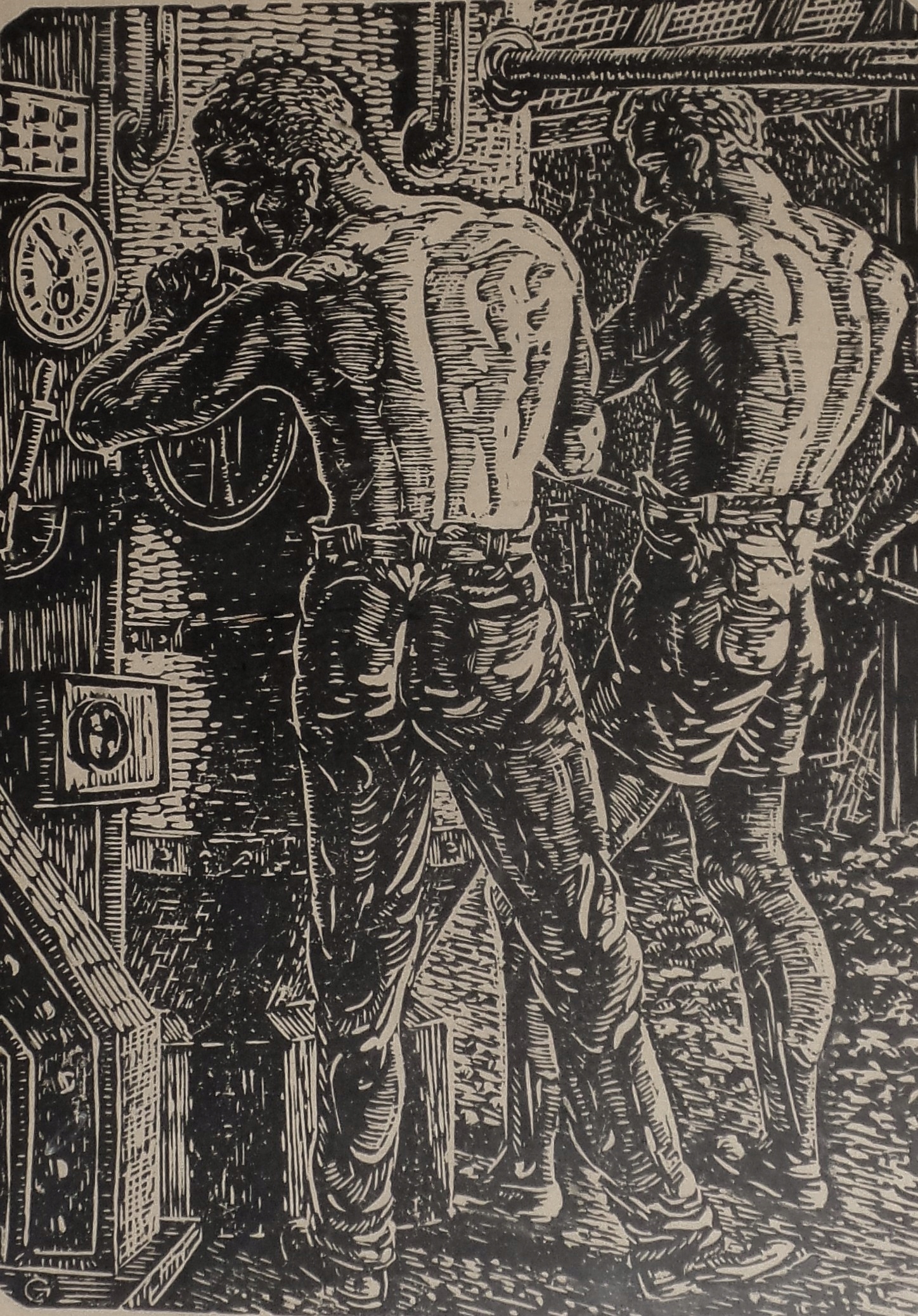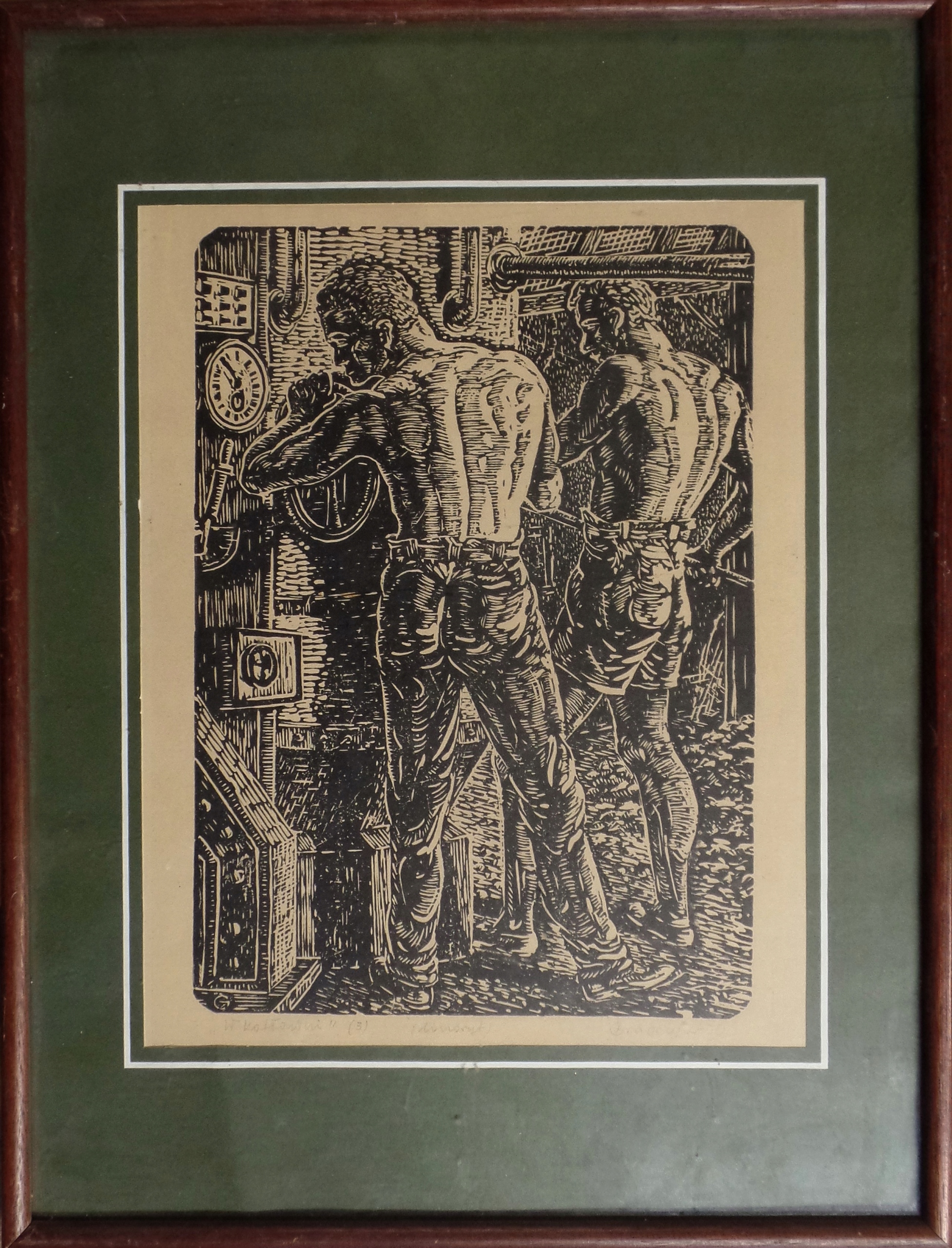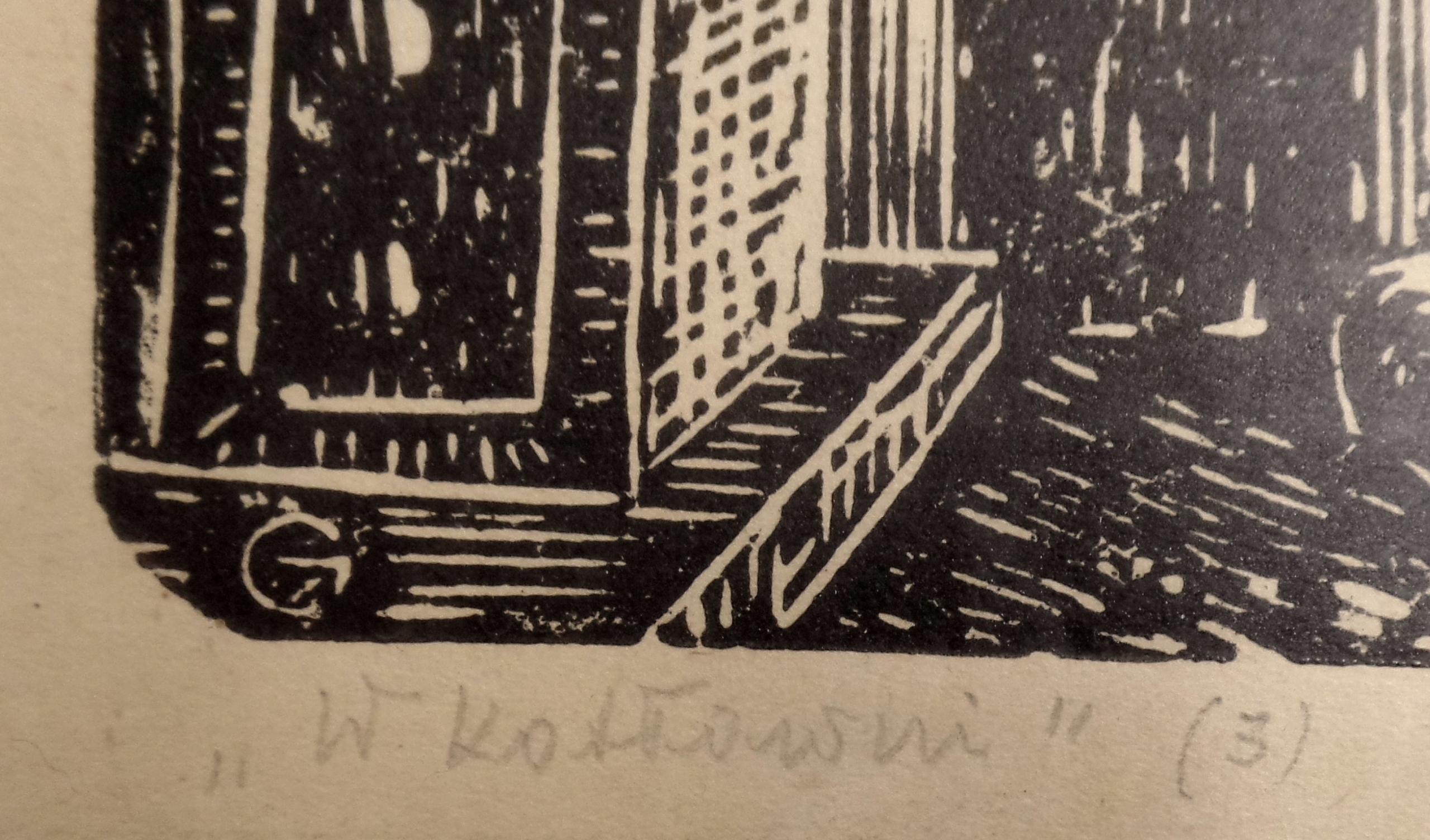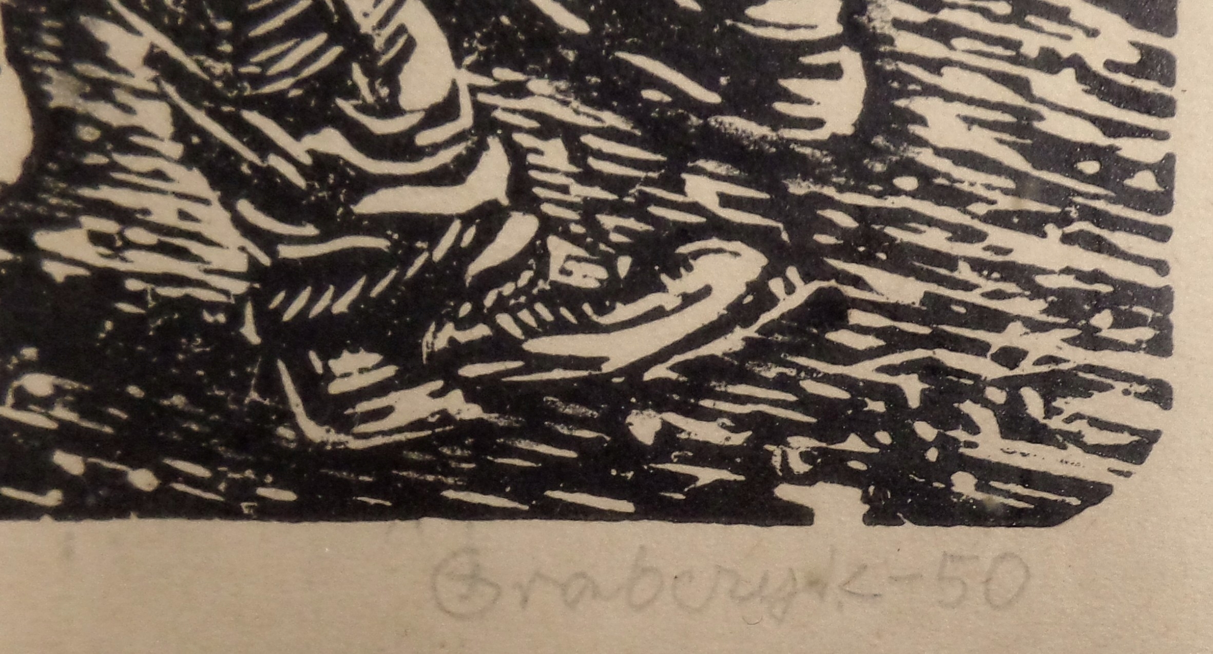 Станислав Грабчик Линопут с 16 x 18,5 см, печать на бумаге, подписанный карандашом под котлом »в котле (3) (Linocut) Grabczyk -50. Размеры в кадре 41, 0,5 x 31,5 см.