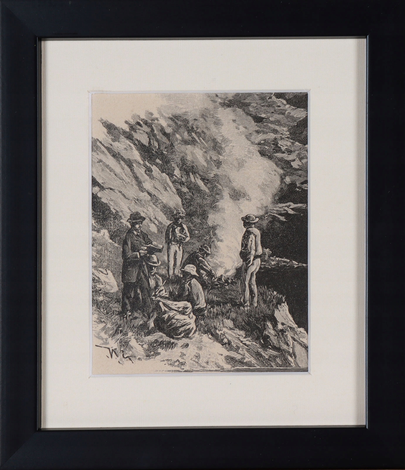 Графика, изображающая горцев, которые разжигали костер для туристов в Татрах.
