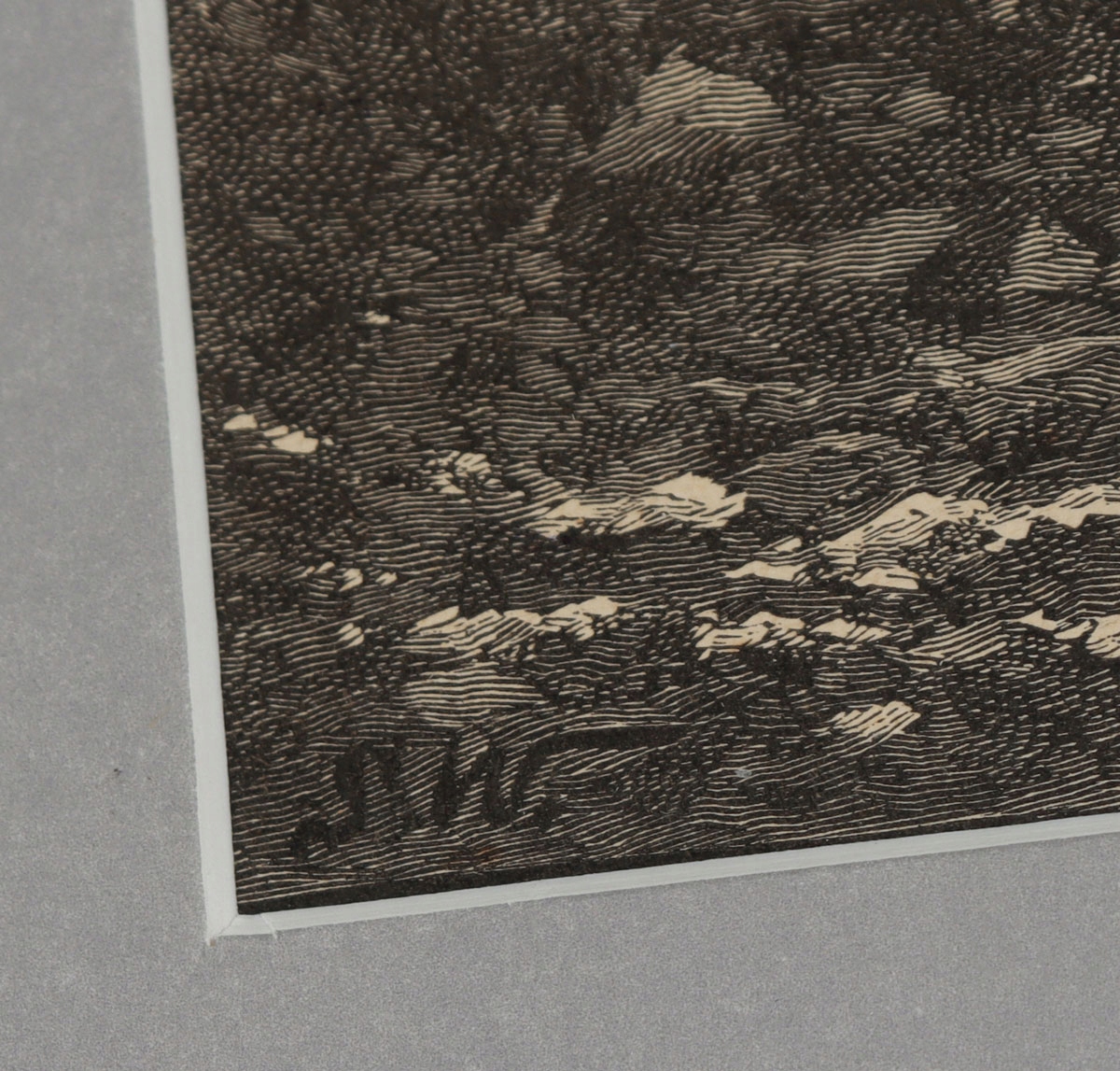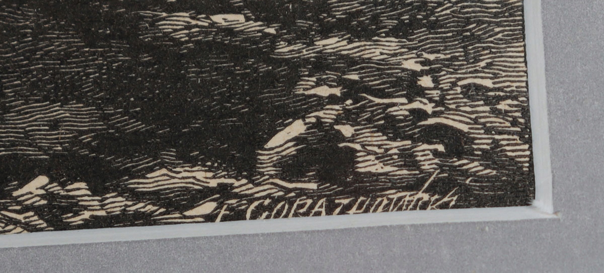 Техника: хранить деревянную кванию/бумагу. Работа подписана на блоке в левом нижнем углу. В правом нижнем углу ссылочный номер на дереве Эдвард Горацдовски (1843 - 1901).