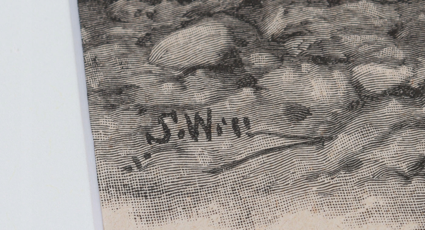 Техника: гравюра на дереве/бумага. Работа подписана на блоке в левом нижнем углу композиции.