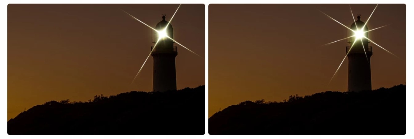 Вспышки солнечных лучей или других источников света распространяются в восьми-четырех направлениях, что дает потрясающий визуальный эффект. Фотографии при таком освещении получаются интереснее.