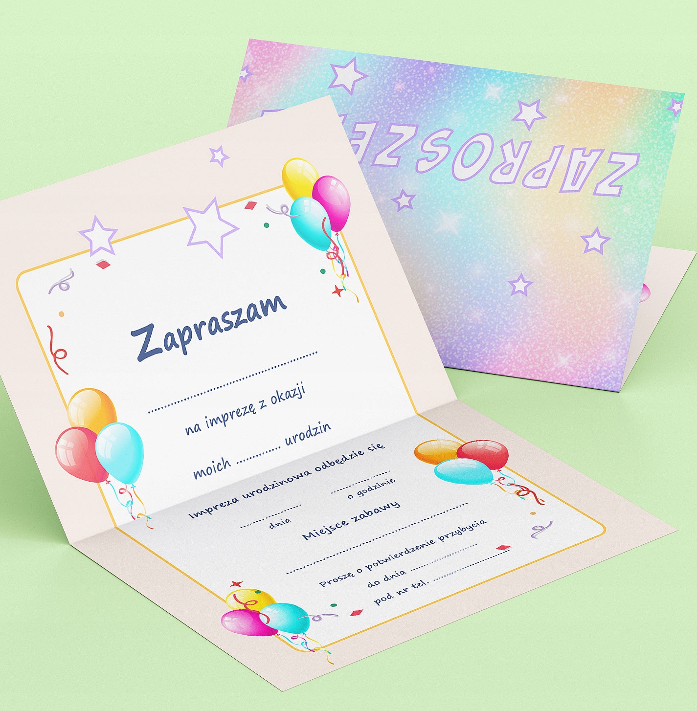 - Двусторонняя печать: Наши приглашения полны забавных мотивов и красочных иллюстраций, которые наверняка порадуют каждого ребенка.