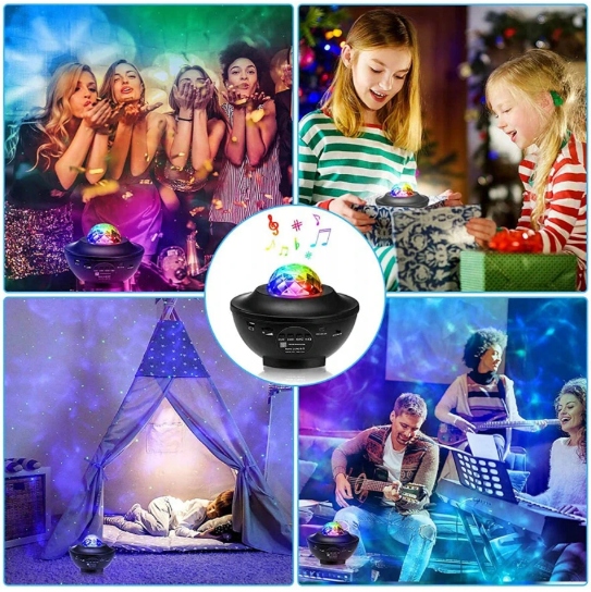 Этот простой в использовании и современный проектор идеально подходит для Рождества, вечеринок, свадеб, дней рождения, Хэллоуина, Пасхи, юбилеев и других торжественных или особых случаев. Он идеально подходит для создания отличной атмосферы на регулярных встречах с друзьями или во время вечеринки. Это идеальная игрушка для детей, возможность подключения к устройству через Bluetooth и воспроизведение музыки усилит атмосферу и веселье. Он также придаст романтическую атмосферу при знакомстве со своей второй половинкой, а также очень хорошо впишется в обычные повседневные ситуации. В настоящее время мы предлагаем последнюю улучшенную версию проектора на рынке.