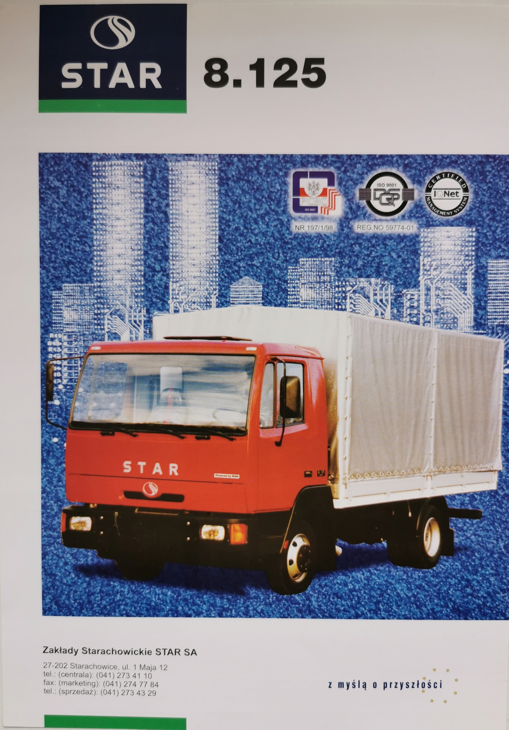 Проспект модели STAR 8.125, технические данные и оборудование на оборотной стороне на польском языке