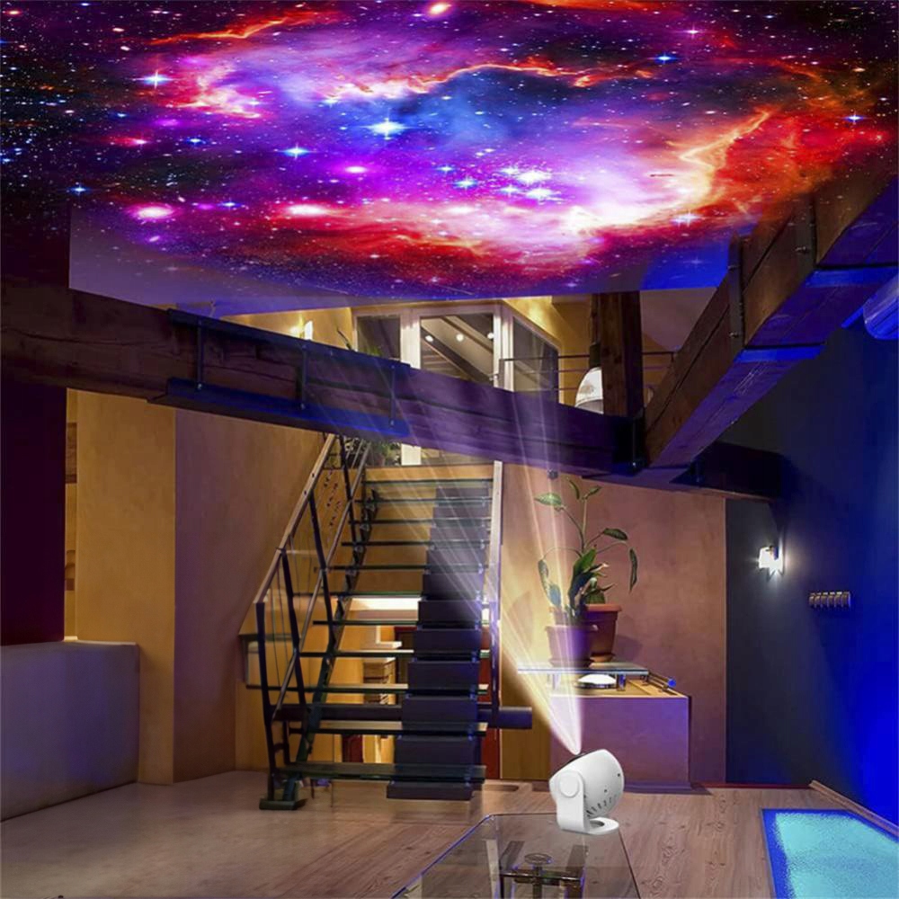 Проектор оснащен вращающейся головкой, которая медленно вращается вокруг своей оси, реалистично имитируя звездное небо, космос или планеты на вашем потолке!