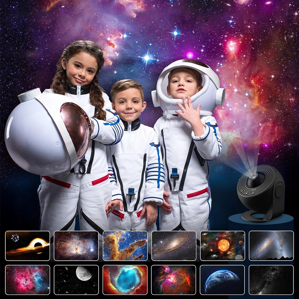 Чистый белый свет 6500K с высокой яркостью обеспечивает четкое и яркое проецирование, позволяя вам наслаждаться потрясающим звездным эффектом с примерно 60 000 звездами на пластинках пленки. Наслаждайтесь реалистичными 3D-проекциями, соперничающими с волшебством планетария.