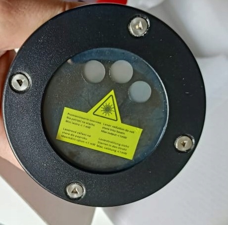 - Проектор в металлическом корпусе с тремя отверстиями для лазеров.