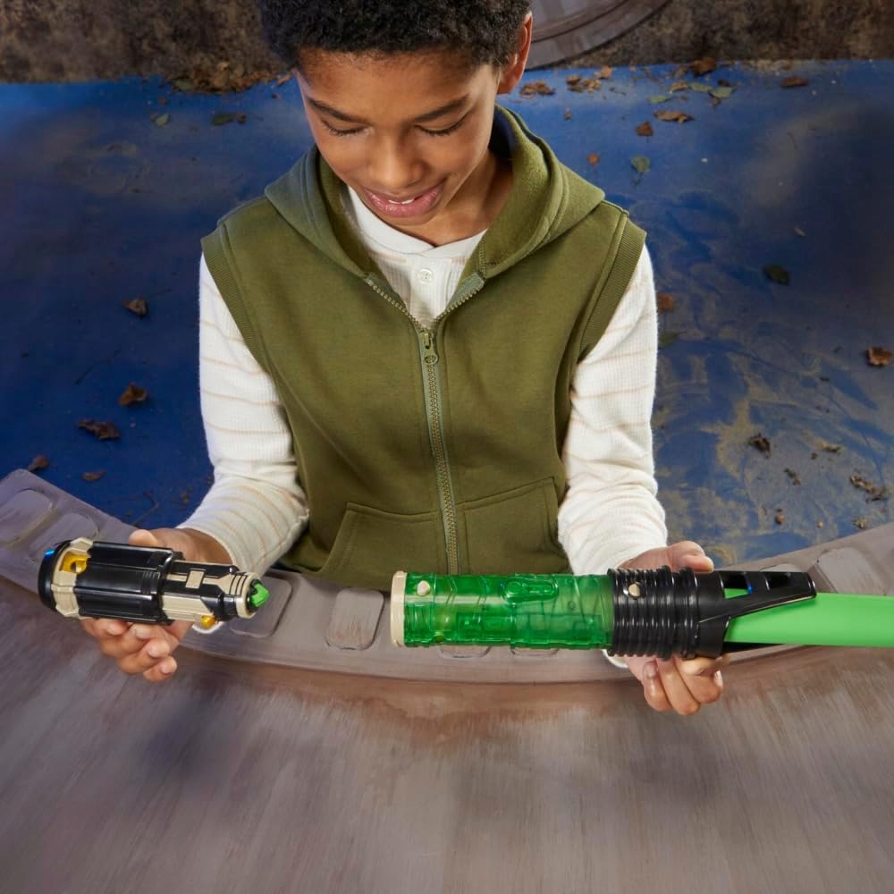 НАСТРАИВАЕМЫЙ СВЕТОВОЙ МАС: Детали совместимы со всей серией Lightsaber Forge, а покупка всего лишь одной дополнительной Lightsaber Forge дает вам в общей сложности 16 комбинаций! (Продается отдельно. В зависимости от наличия.) ВЫДВИЖНОЙ И ПОРТАТИВНЫЙ: эта тематическая игрушка имеет выдвижное лезвие, которое быстро выдвигается или убирается, что позволяет легко начать играть и носить меч. Это отличный подарок в стиле «Звездных войн» для мальчиков и девочек от 4 лет и старше. КУПИТЬ СВОЙ СВЕТОВОЙ МАСЬ. Эта неэлектронная игрушечная сабля состоит из четырех частей: выдвижного зеленого лезвия, колпачка, гарды и сердцевины, поэтому дети могут собрать свой собственный световой меч для ролевых дуэлей. ДИЗАЙН И ОТДЕЛКА, ВДОХНОВЛЕННЫЕ ПЕРСОНАЖАМИ: представьте, что вы владеете Силой с помощью светового меча Люка Скайуокера Forge Kyber Core, вдохновленного оружием Люка из галактики «Звездные войны». ПРЕДСТАВЛЯЕМ KYBER CORE: Официально лицензированная серия световых мечей Hasbro по мотивам «Звездных войн» была расширена за счет включения мечей Kyber Core с прозрачной крышкой, раскрывающей внутреннюю структуру меча и источник его энергии: кибер-кристалл.