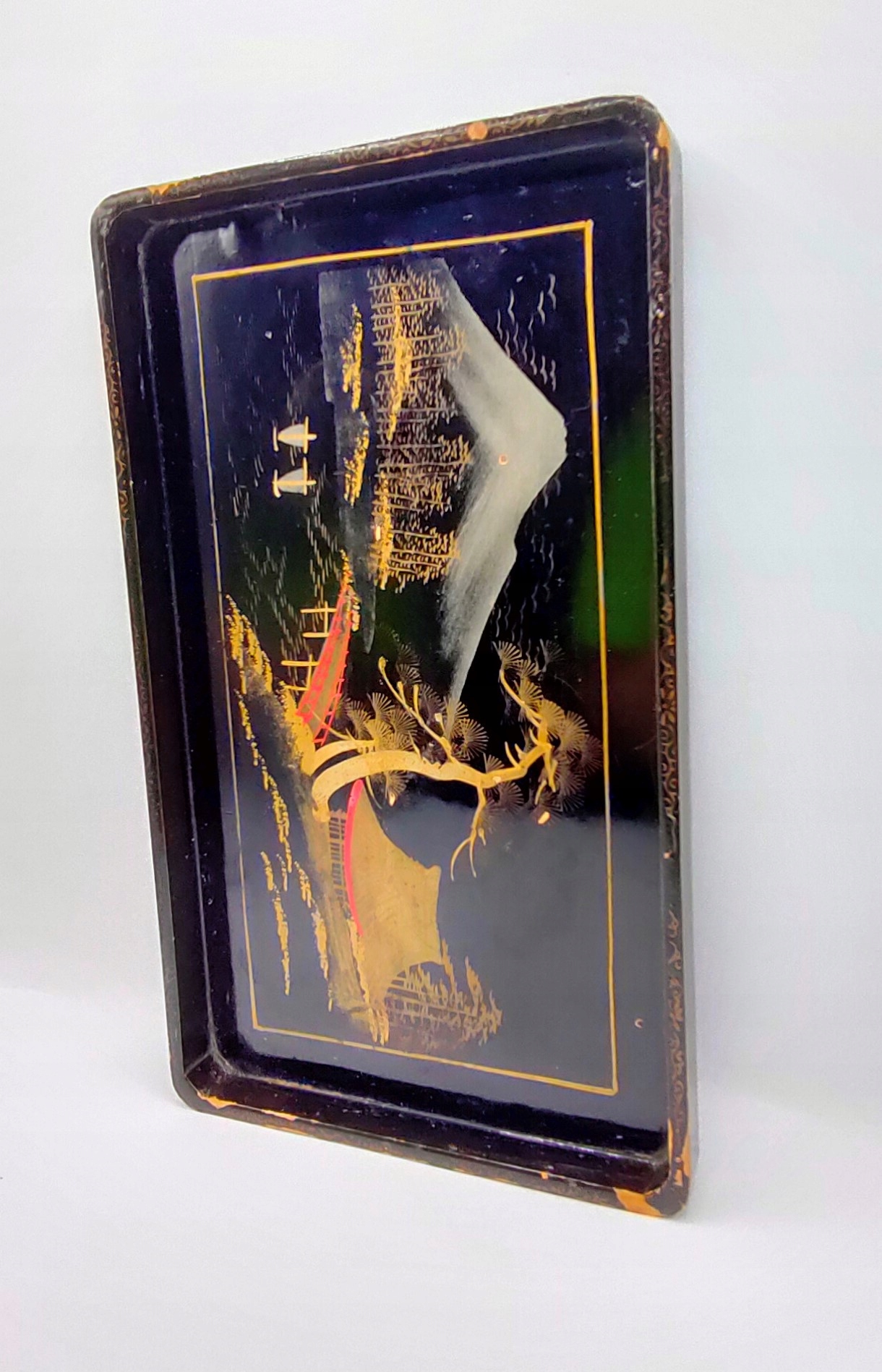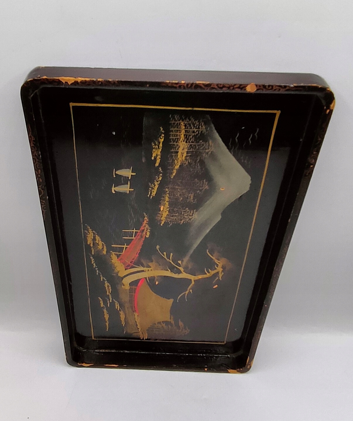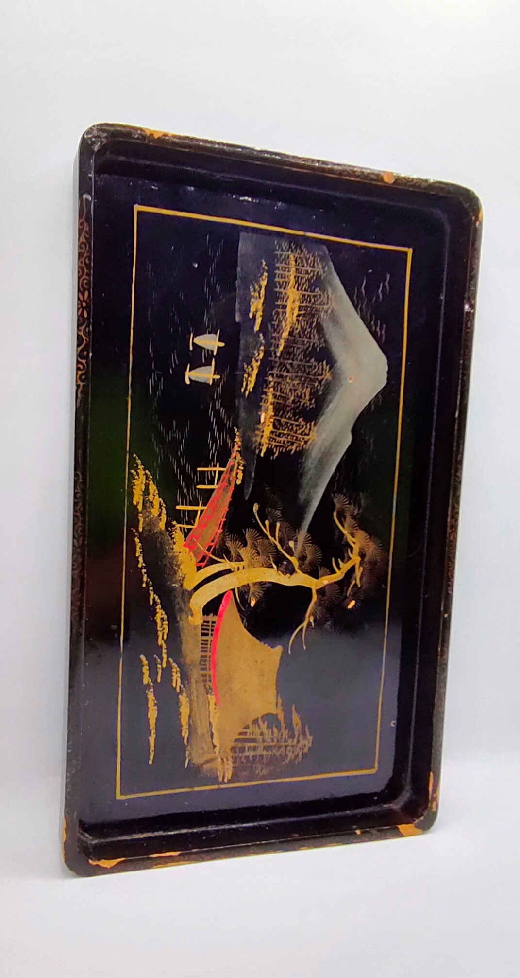 СТАРЫЙ - японский - поднос из бальзы - лакированный - интересный - 30 см,