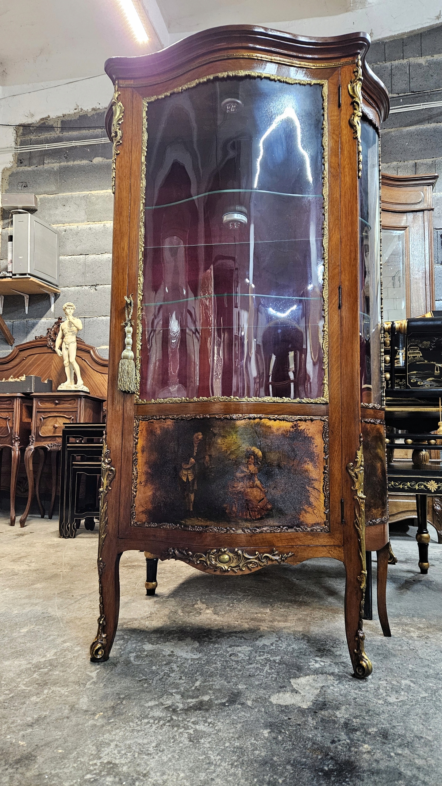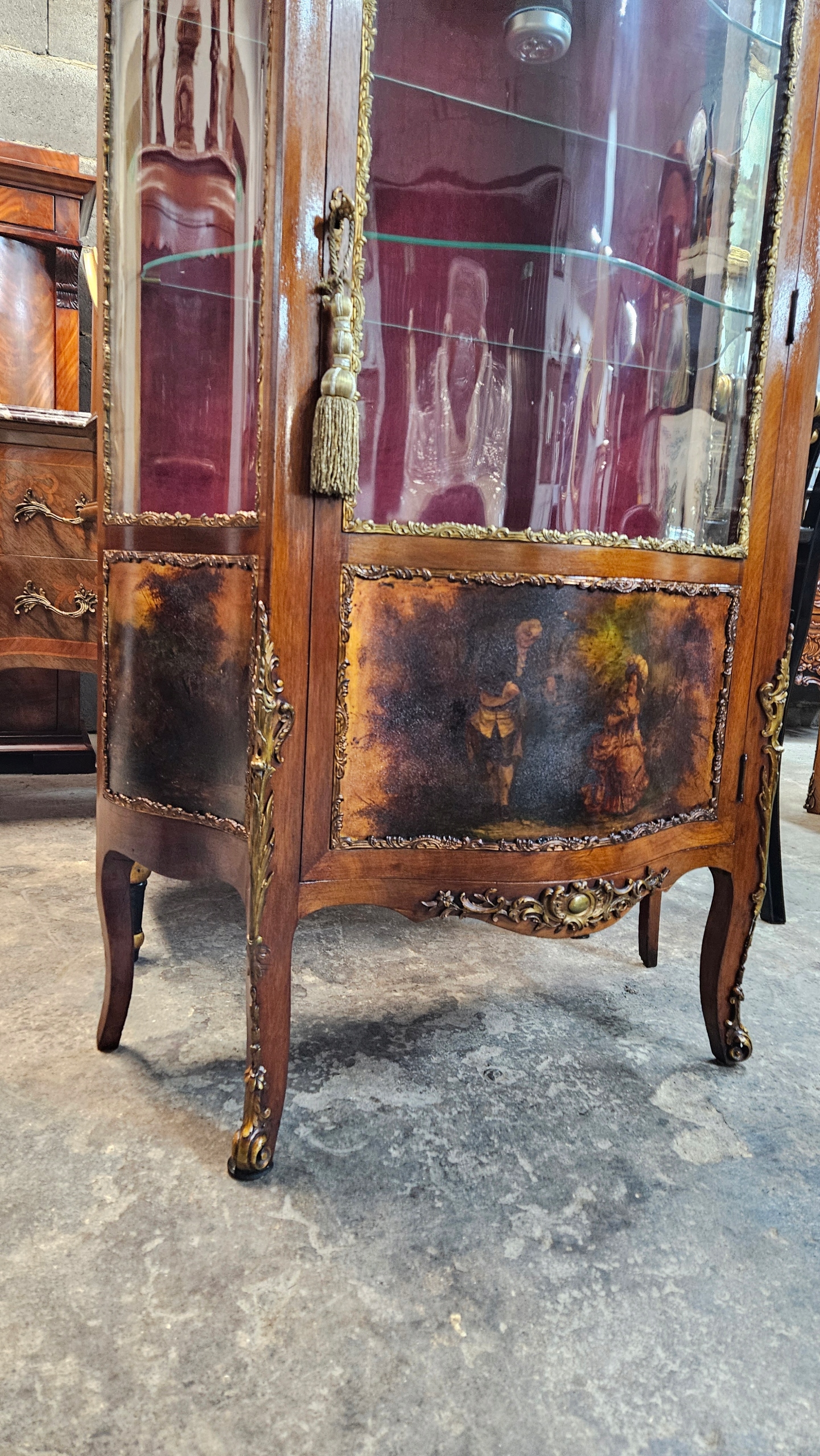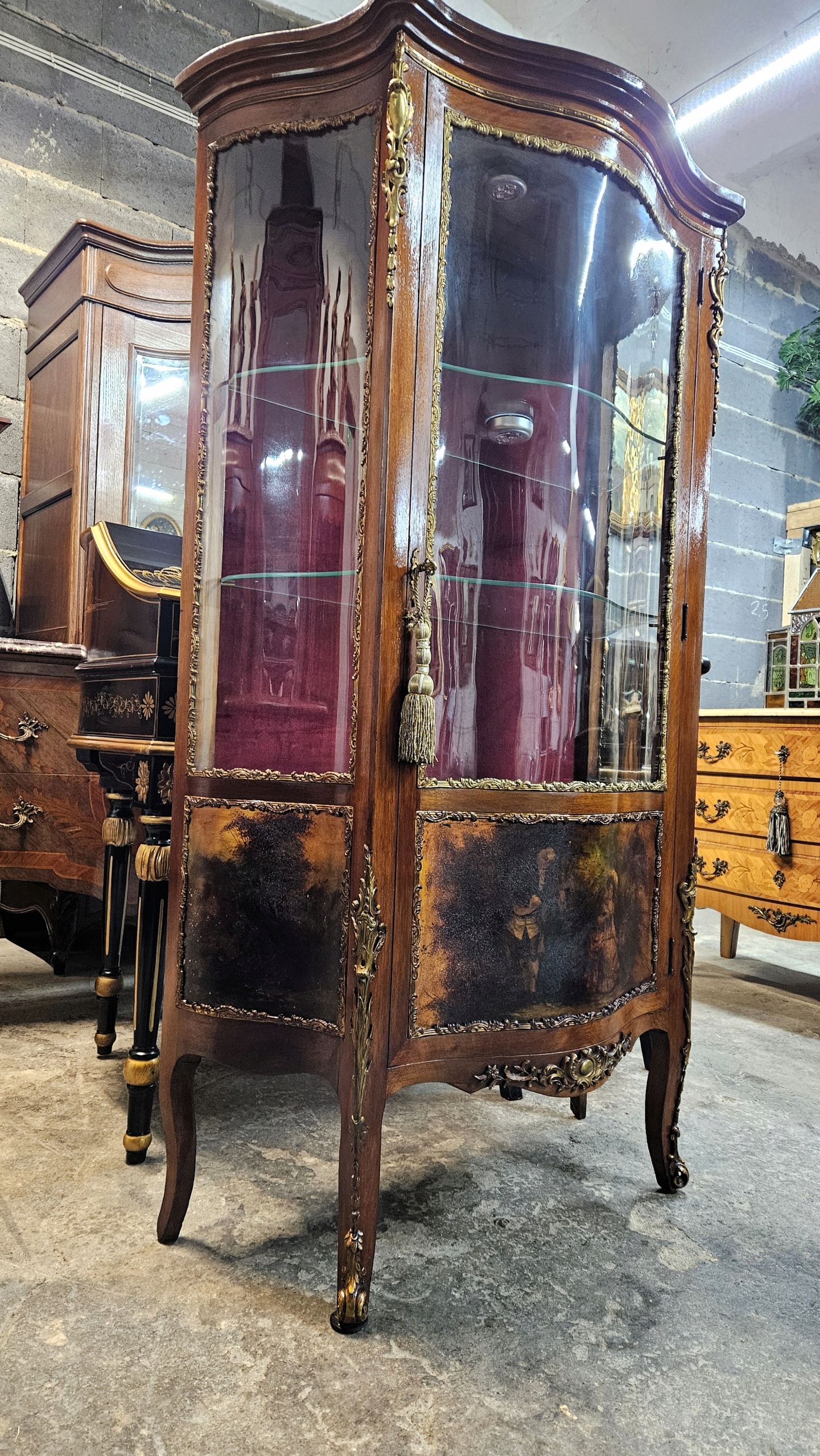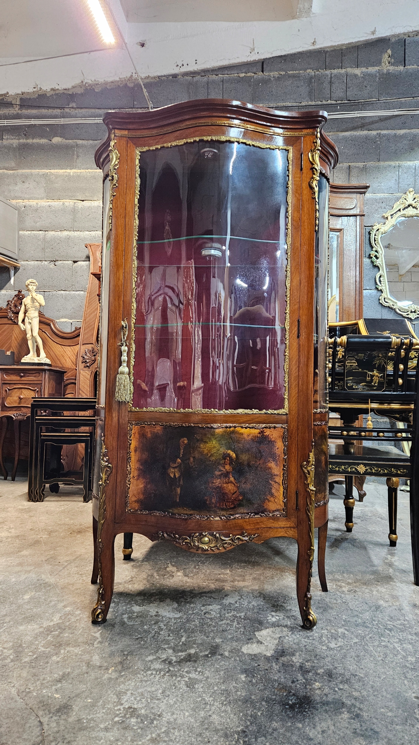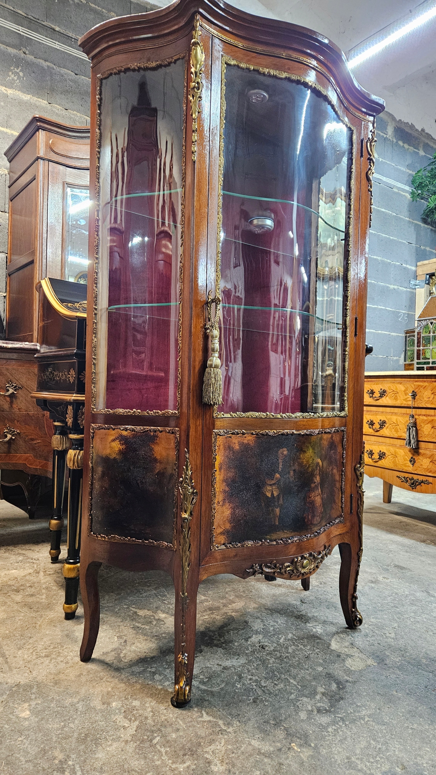 Оформлено выпуклое стекло, все без повреждений. Внутри полки, орг. для этого шкафа.