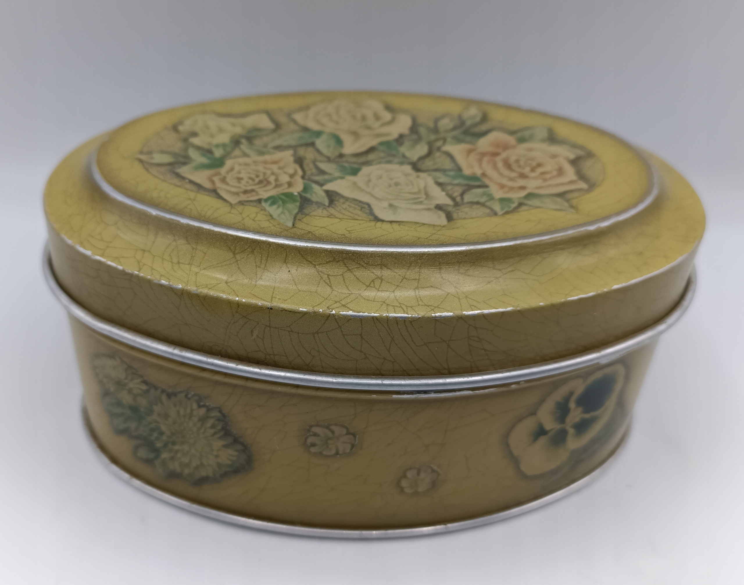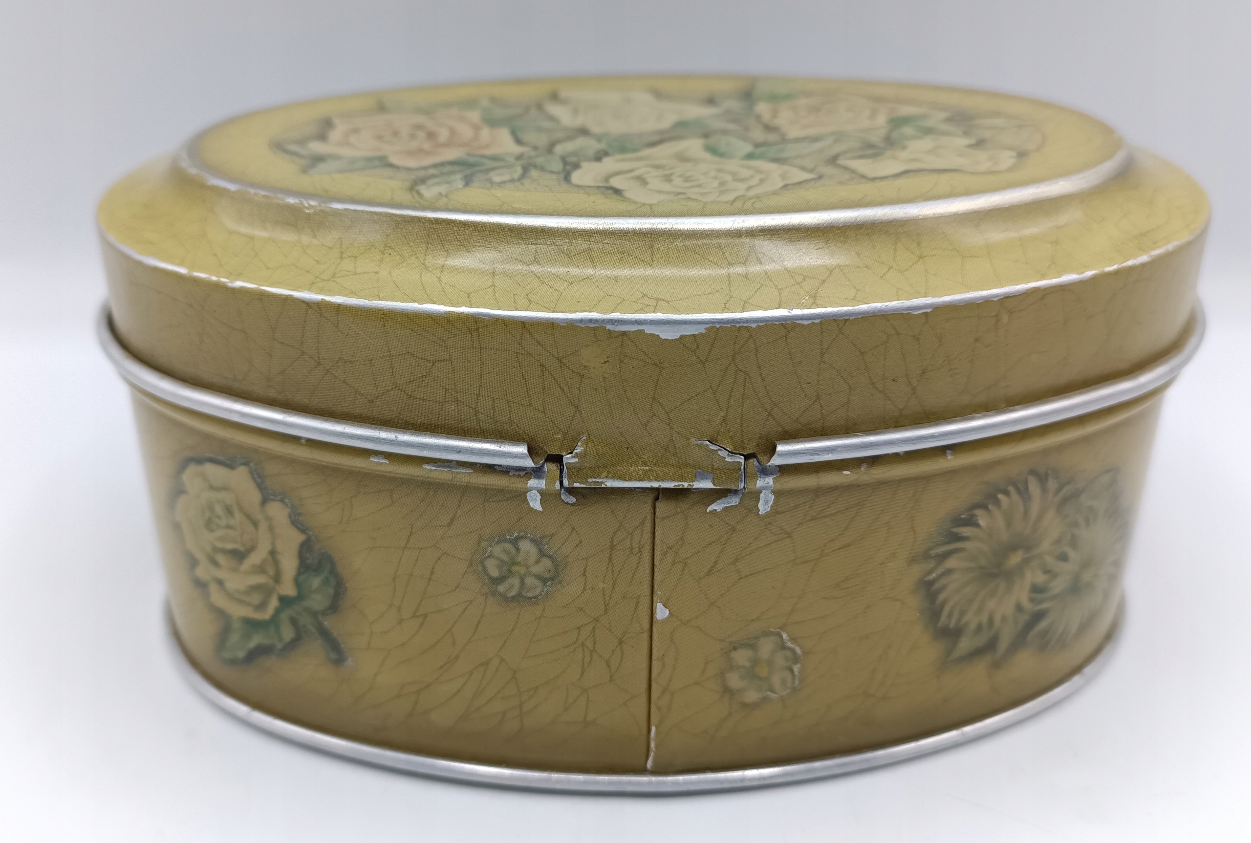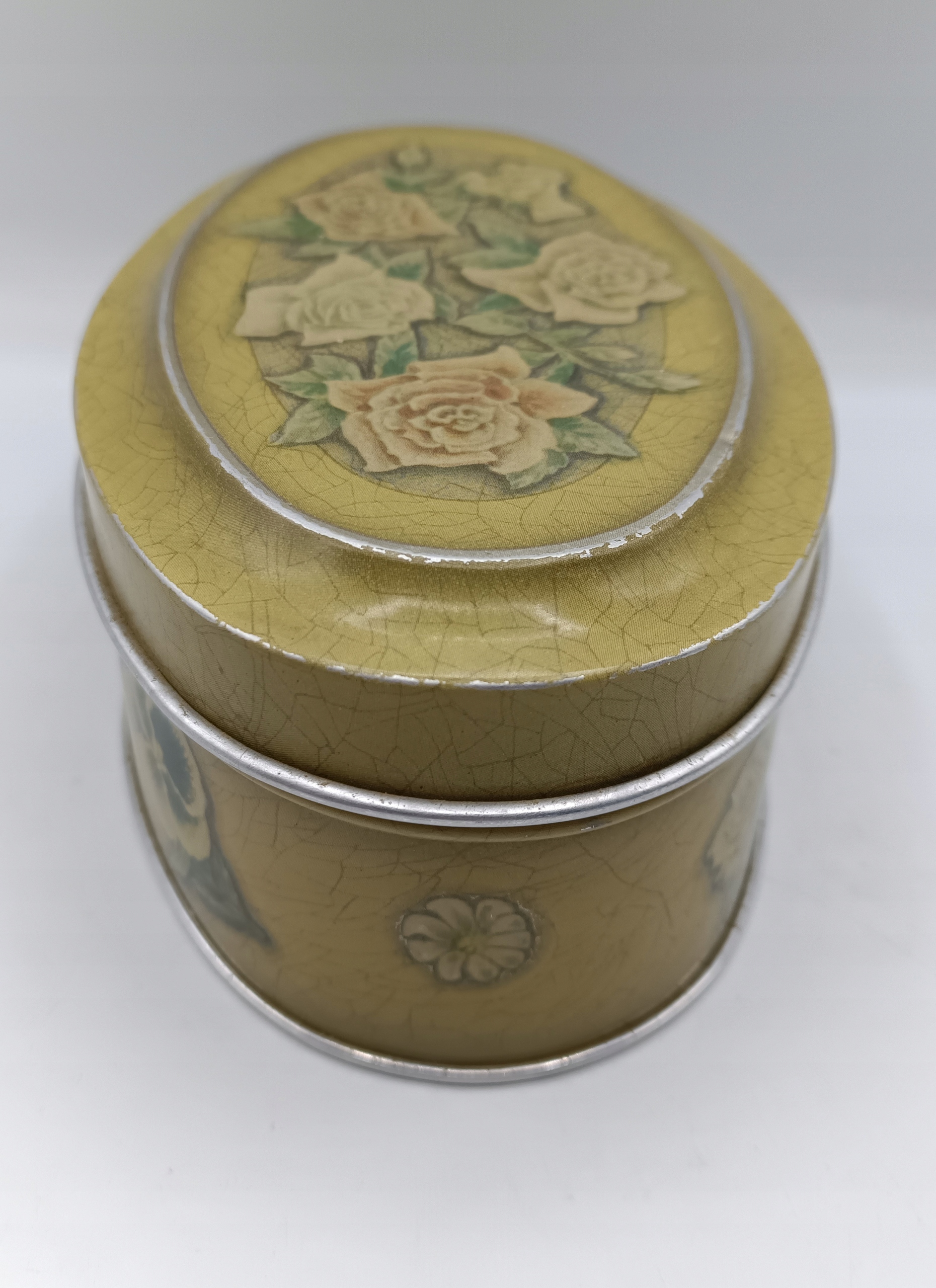 • это старая винтажная вещь - как видите, есть небольшие царапины, потертости, шарнир послабее, но крышка все равно хорошо подогнана - все это только добавляет очарования банка, она великолепна и выделяется. глаза - одно целое с душой, все дополнено красивыми цветами,