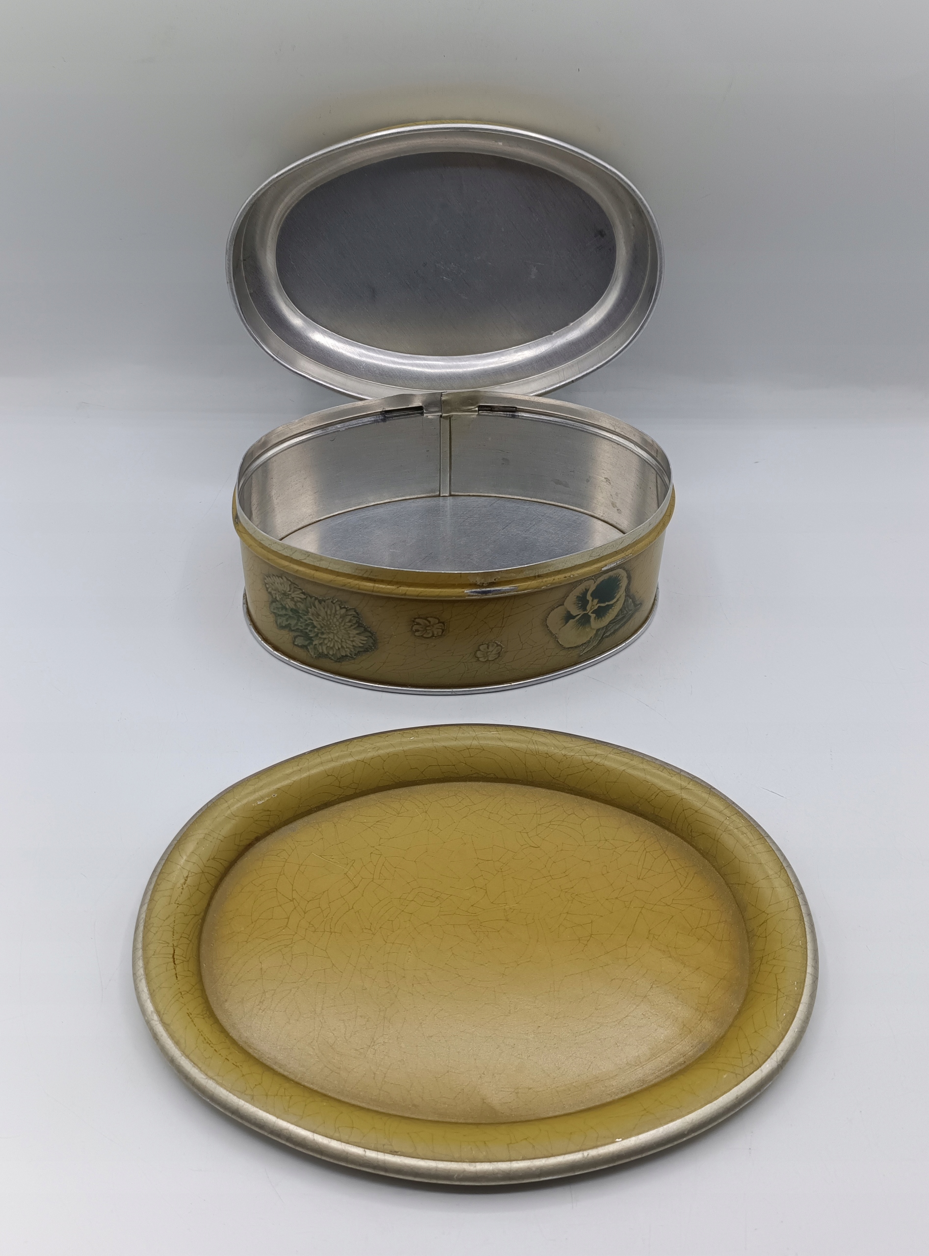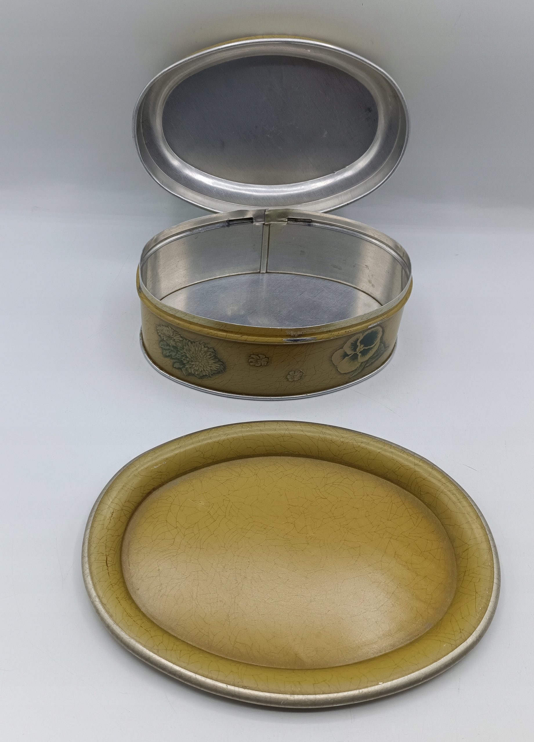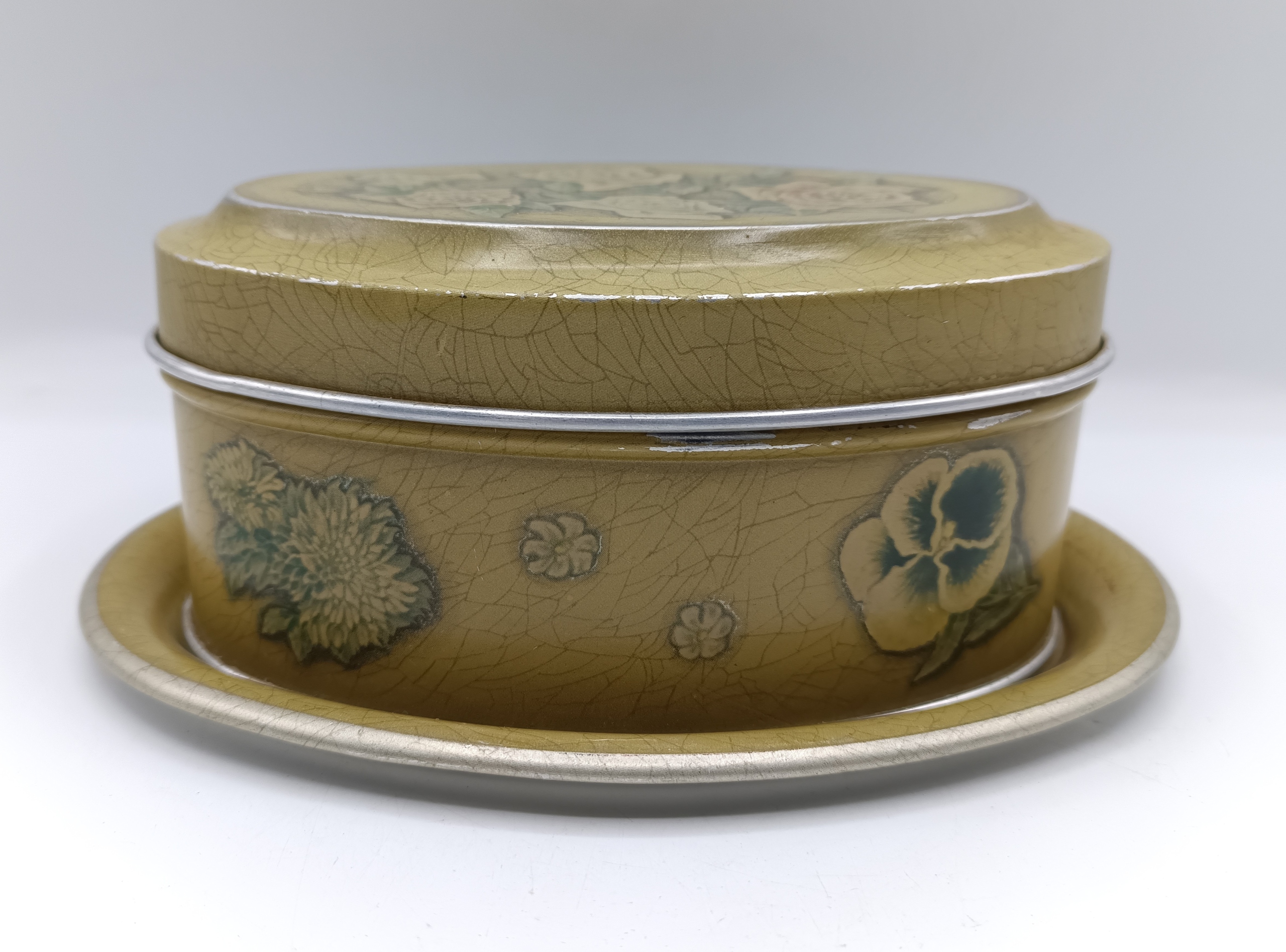 • это старая винтажная вещь - как видите, есть небольшие царапины, потертости, шарнир послабее, но крышка все равно хорошо подогнана - все это только добавляет очарования банка, она великолепна и выделяется. глаза - одно целое с душой, все дополнено красивыми цветами,